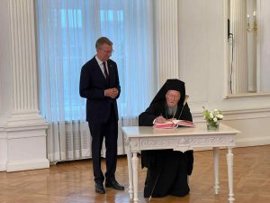 Вселенскиот патријарх Вартоломеј се сретна со претседателот на Латвија, Едгарс Ринкевич, во Претседателската палата во Рига.