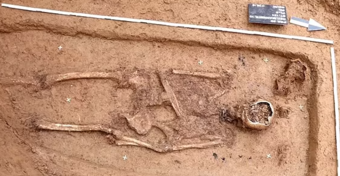 Тој беше изваден од гробот на маж кој исто така бил закопан со кадифен сад и бокал од печена глина – потенцијално лични предмети на починатиот.