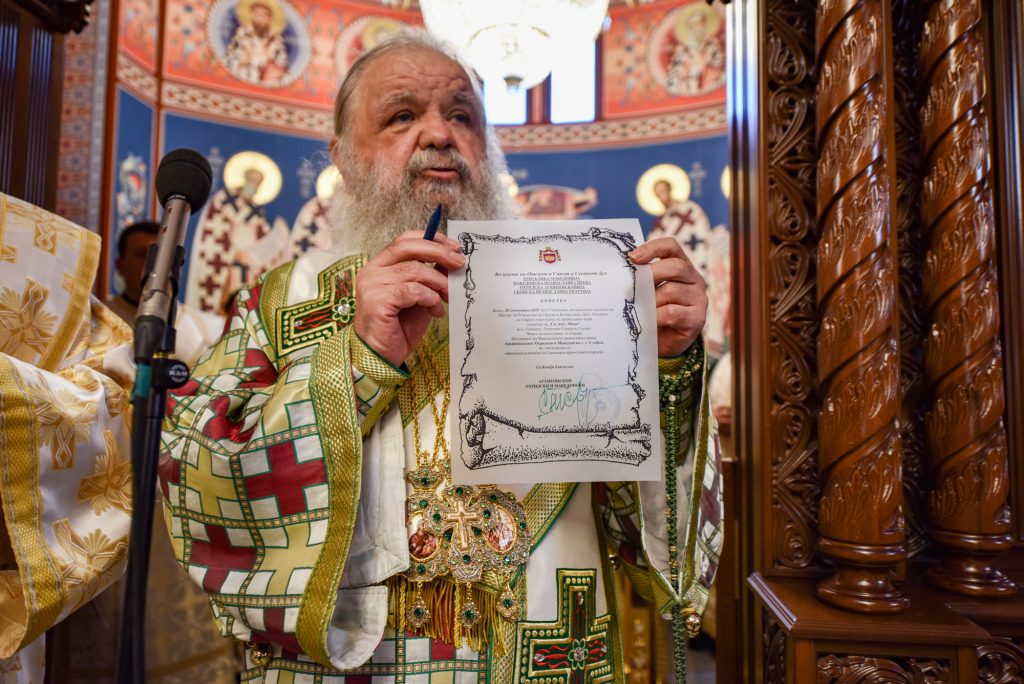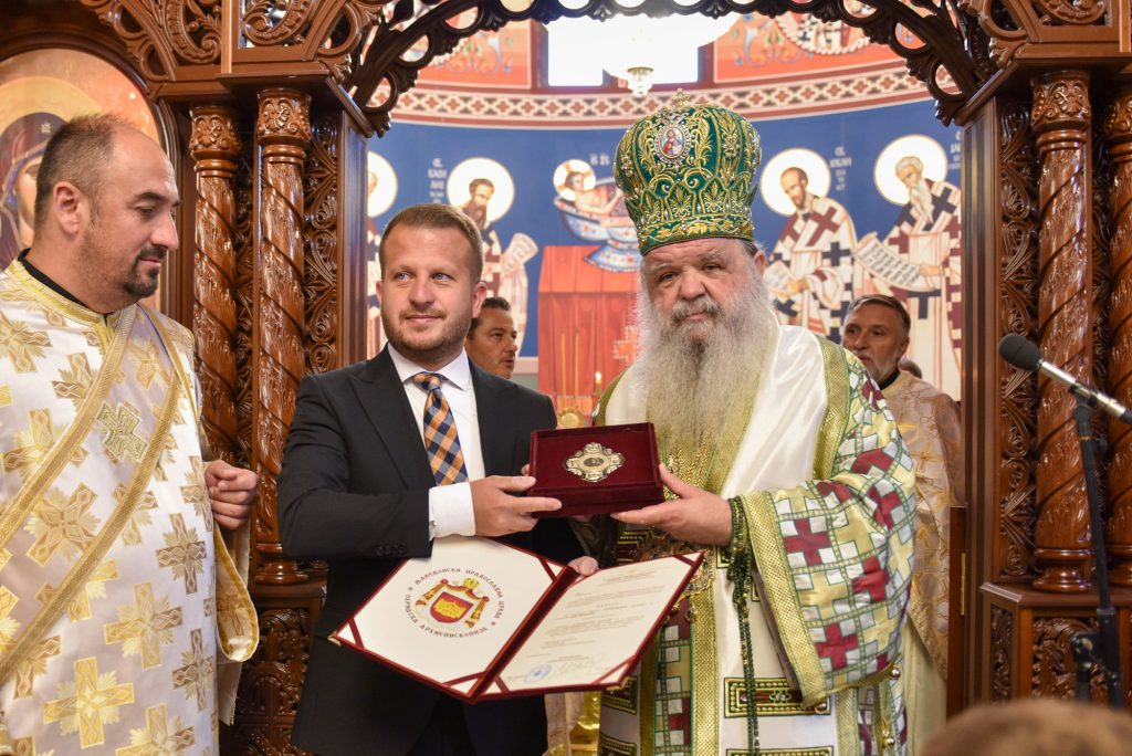 По Чинот на Осветување беше отслужена Божествена Архијерејска Литургија во присуство на многуброен верен народ. На самиот крај од овој свечен настан, Архиепископот им врачи одличија „Архиепископ Доситеј“ на г. Јане Мицевски и г. Љубе Аврамовски за нивниот особен придонес при изградбата и украсувањето на храмот, велат од епархијата.