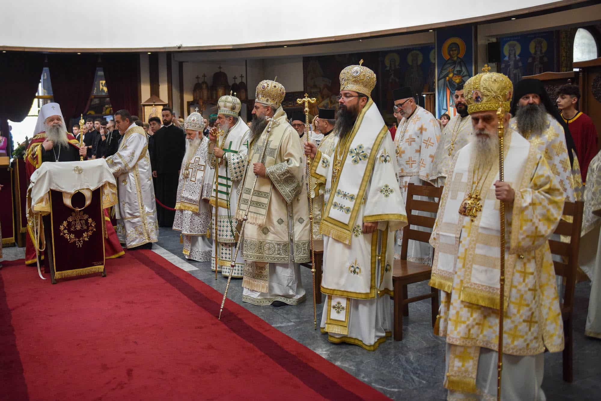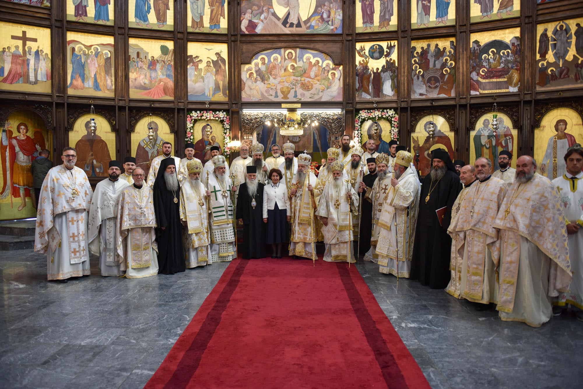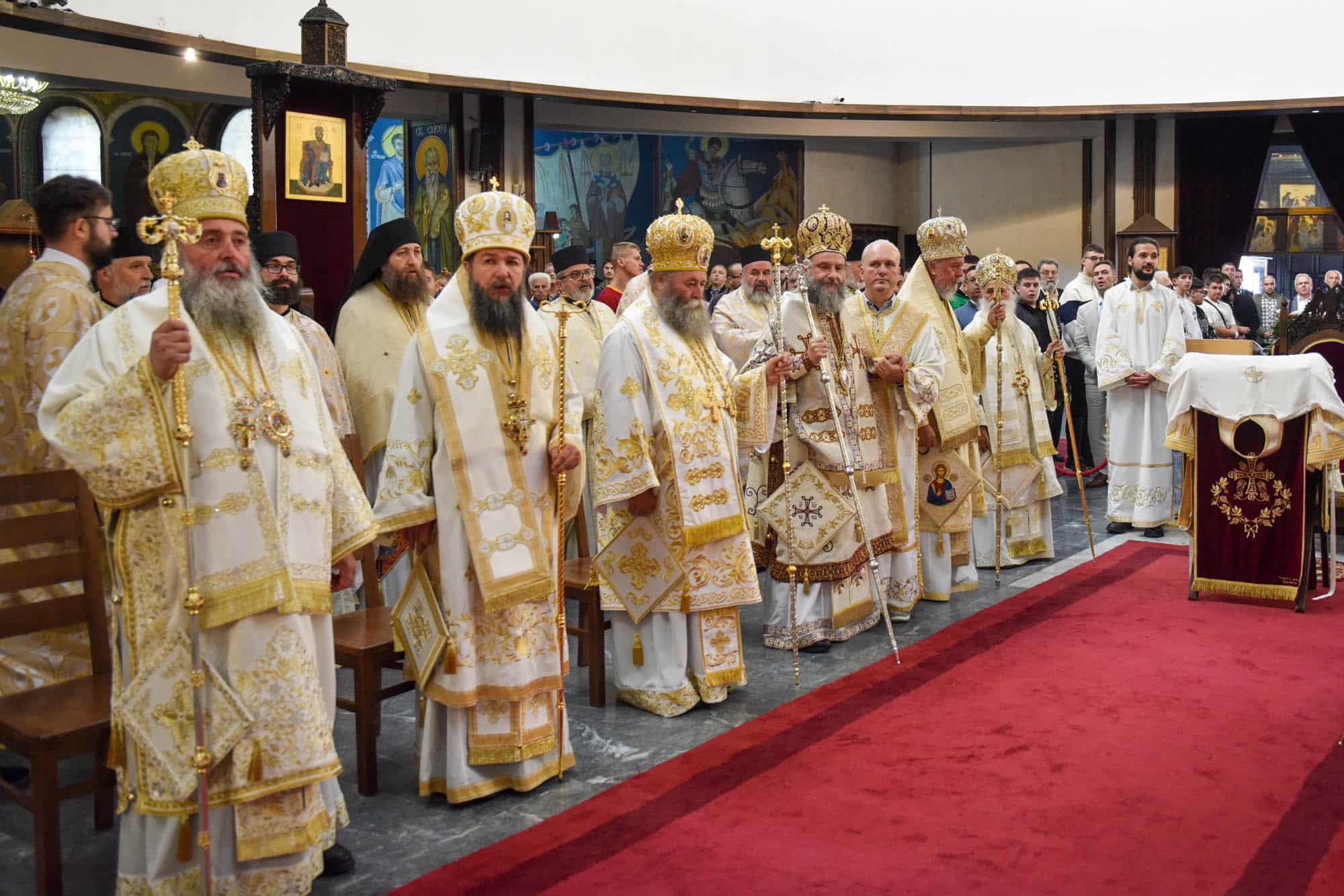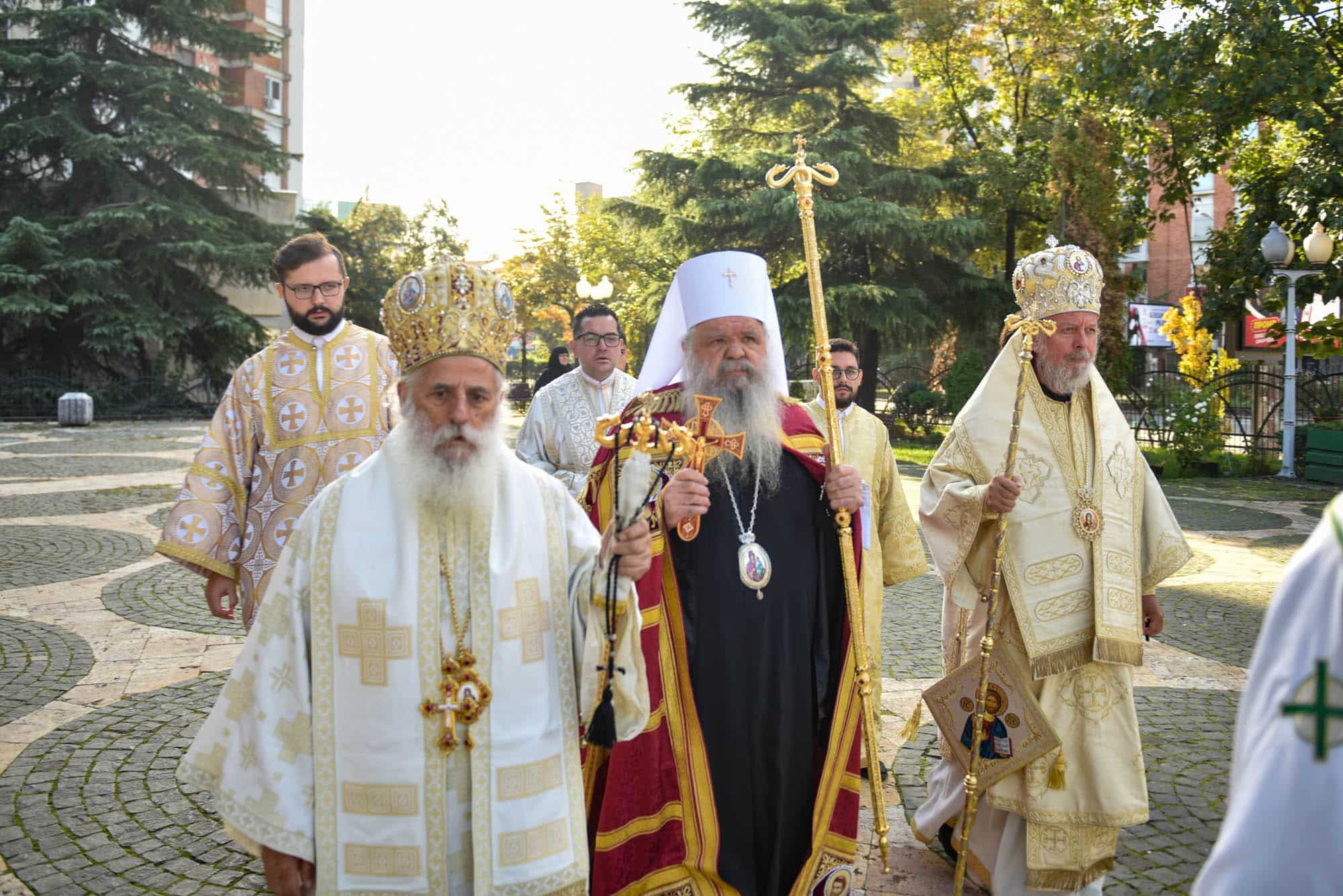 На литургијата во Соборниот храм во Скопје сослужуваа епархиските архиереи, членови на Синодот на МПЦ-ОА, но не и викарните епископи.