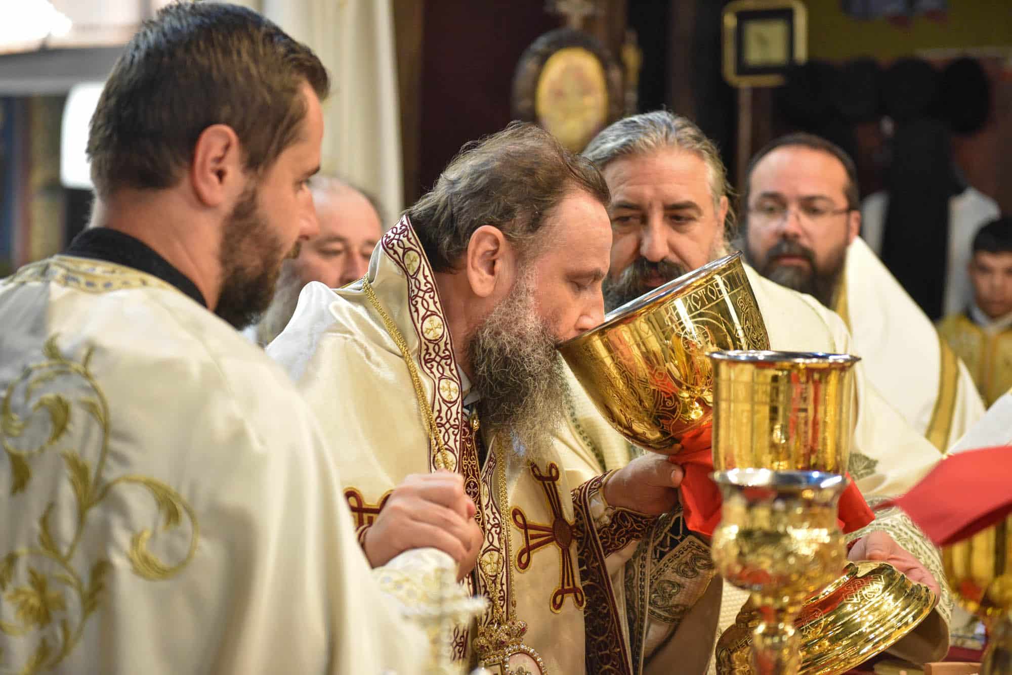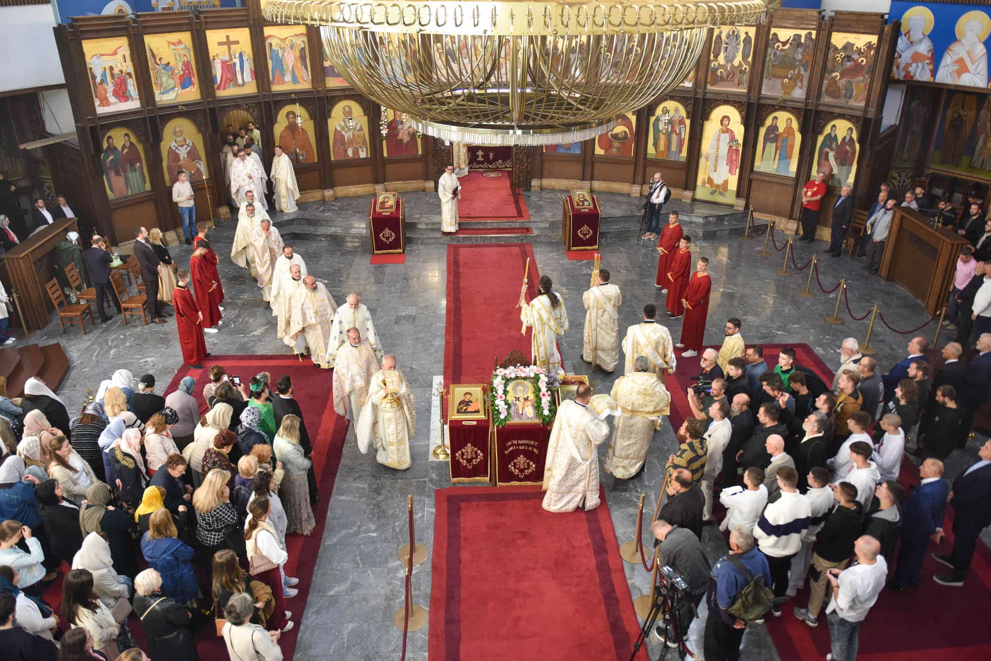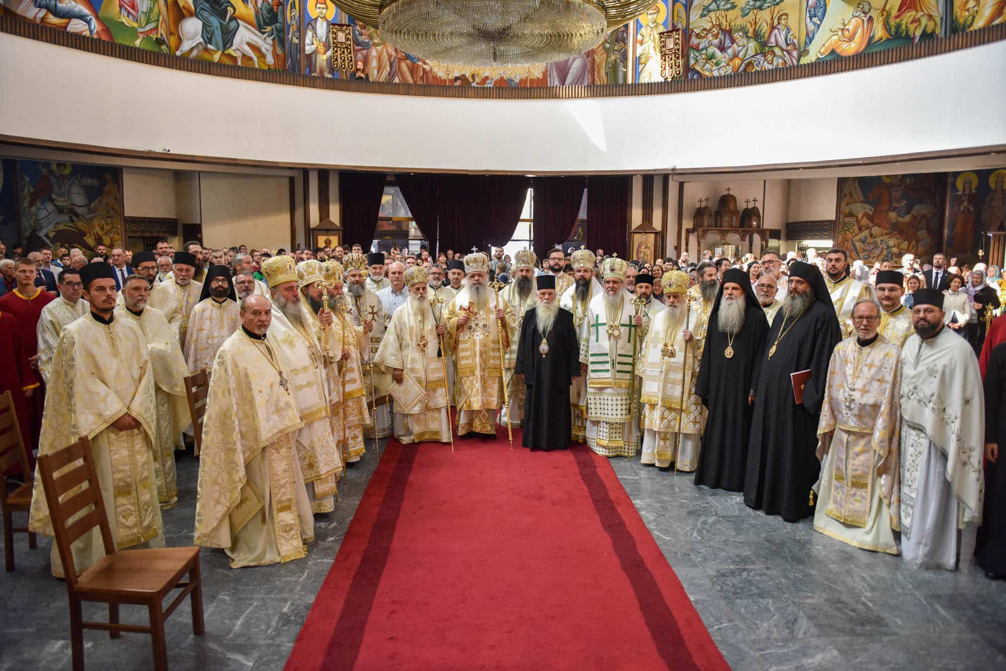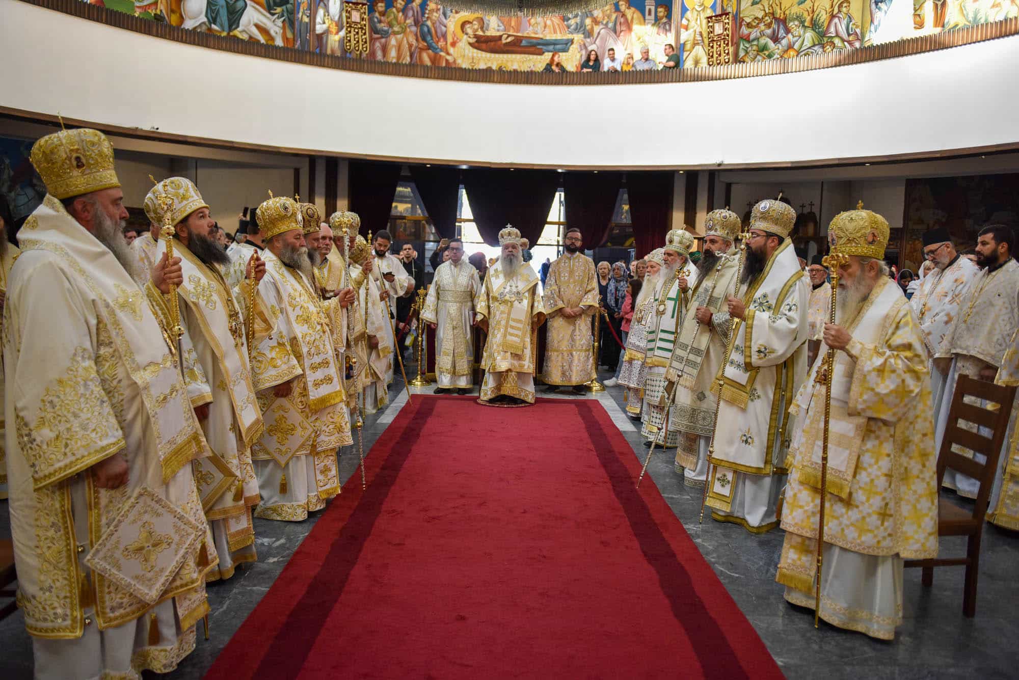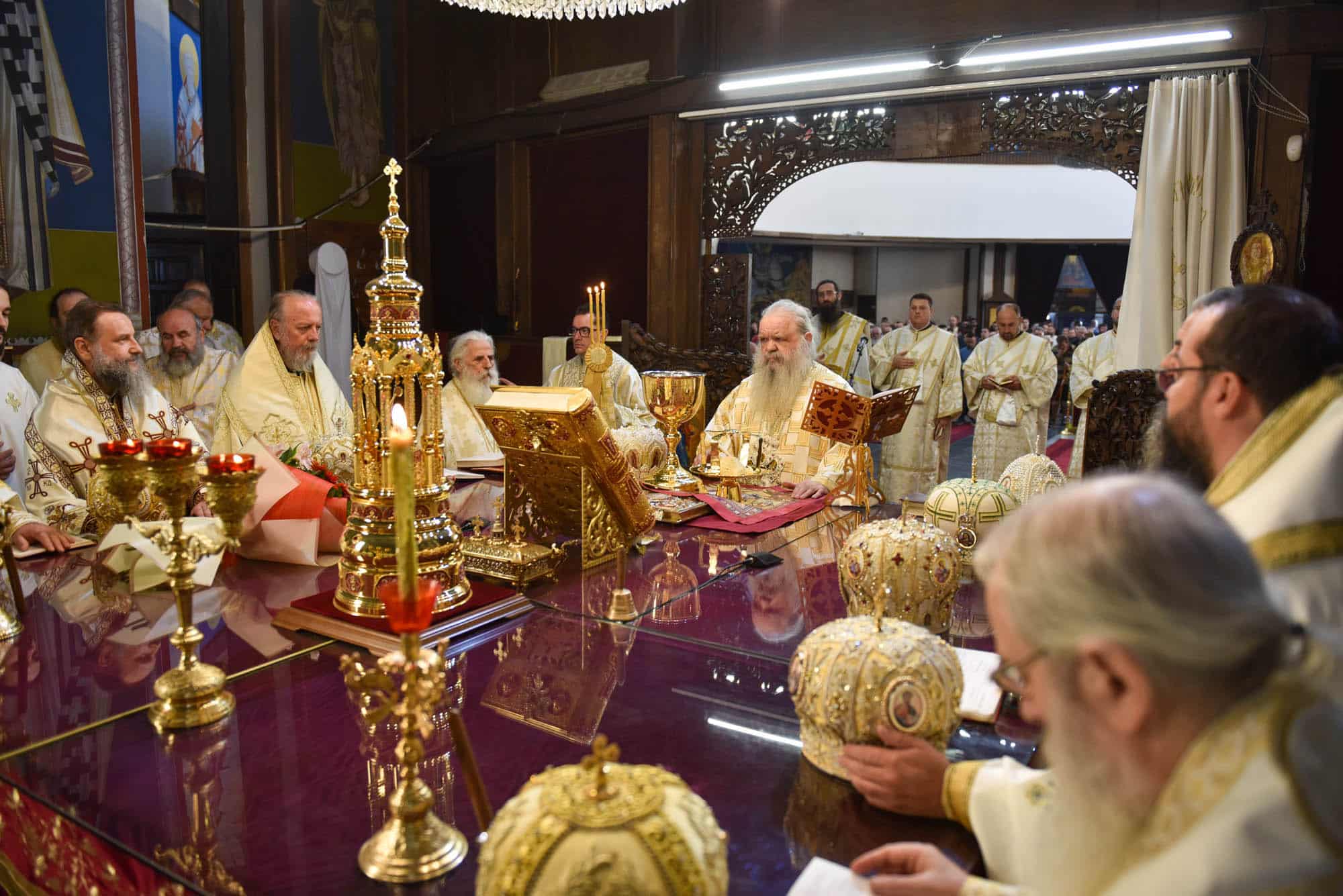 На литургијата во Соборниот храм во Скопје сослужуваа епархиските архиереи, членови на Синодот на МПЦ-ОА, но не и викарните епископи.