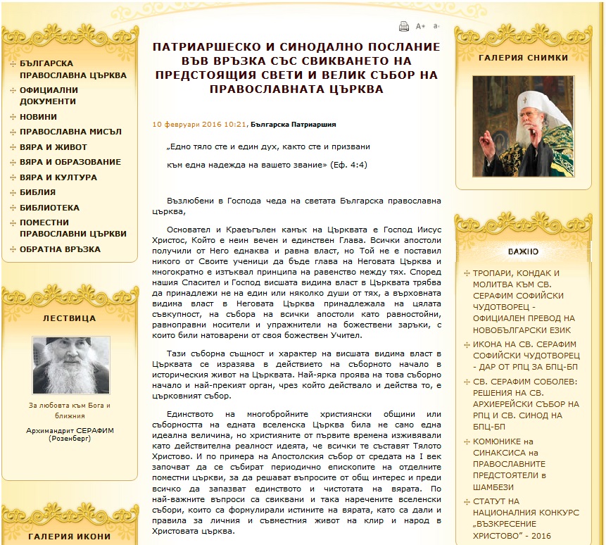 Инаку, соопштението на БПЦ се однесува на заклучоци на Бугарската црква, во врска со најавениот Голем собор на Православната црква, кој треба да се одржи во јуни на Крит.