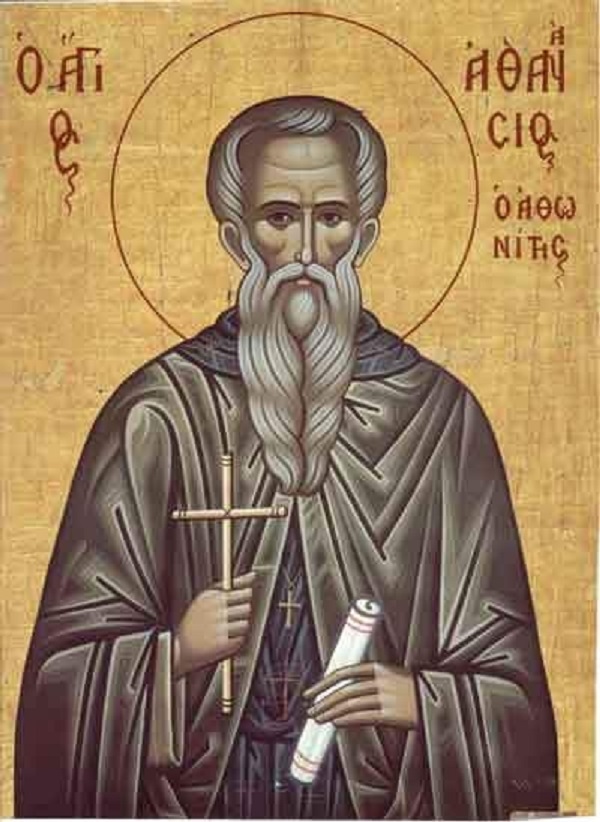 Беше роден во Трапезунт, од богобојазливи родители. Рано остана сираче, но по Божја Промисла го зеде некој војвода, го одведе во Цариград и го даде да ги изучува науките. Заради својата кроткост и смиреност им беше миленик на врсниците. Во детските игри тие ќе го избереа овој за цар, оној за војвода, а Атанасиј за игумен. Како некое претскажување… Кога заврши со училиштето Атанасиј (до постригот Аврамиј) се оддалечи во Малеинската пустина, близу Света Гора, каде што се подвизуваше како ученик на прочуениот Михаил Малеин. Желен за потесен подвиг, се пресели на Света Гора заради безмолвие. Но околу него почнаа да се собираат мнозина ревнители кон подвижничкиот живот и тој беше принуден да ја соѕида својата славна Лавра. Во тоа изобилно му помагаа византиските цареви, најпрво Никифор Фока којшто и самиот сакаше да се замонаши и да се повлече, а потоа Јован Цимисхиј. На Свети Атанасиј навалуваа многубројни искушенија и од демоните и од луѓето, но тој како храбар Христов војник одолеваше на с ѐ и со својата неизмерна кроткост и непрестајна молитва кон живиот Бог сите ги победуваше. Полн со Божја благодат, се удостои да Ја види Пресвета Богородица, Којашто чудесно низведе вода од карпа и му вети дека секогаш ќе биде Икономиса (Игуманија) на манастирот. Атанасиј предничеше пред своите браќа и во работата и во молитвата и сите ги љубеше со љубов на пастир и духовен отец. Смртта му дојде ненадејно. Еднаш со шестмина монаси се искачи над една новоизградена црквена припрата да го прегледа ѕидот што се ѕидаше тогаш, но ѕидот се урна и сите ги затрупа. Така заврши овој голем светилник на монаштвото, во 980 година. По смртта повеќепати им се јавуваше на своите собраќа за да ги утеши или искара.
