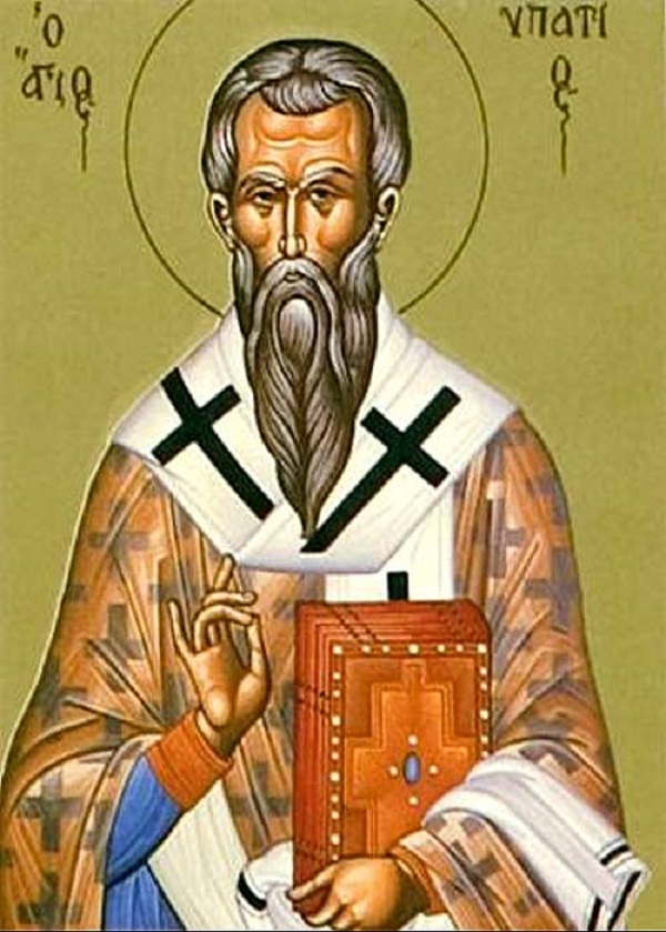 Sveti IpatijРоден е во Киликија, а бил епископ во градот Гангра. Учествуваше на Првиот Вселенски Собор. На сите страни бил прочуен заради благочестивиот живот и дарот на чудотворство. Царот Констанциј нареди да се изобрази ликот на Ипатиј уште за време на животот на овој светител и тој лик царот го држеше во својот дворец како оружје против секаква непријателска сила. Враќајќи се еднаш од Цариград Ипатиј беше нападнат во еден теснец од еретиците новатијани и турнат од друмот во некоја кал. При ова една жена од таа дружина го удри со камен во главата и вака светителот го заврши својот земен живот. Но, жената одеднаш полуде и го зеде истиот оној камен и со него се удираше самата себеси. Кога ја доведоа на гробот на Свети Ипатиј и Му се помолија на Бога за неа, по големата милосрдност на Свети Ипатиј, таа се исцели и остатокот од животот го помина во покајание и молитва. Свети Ипатиј пострада и се пресели во Царството на Христос во 326 година.