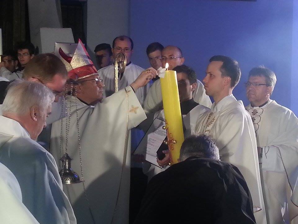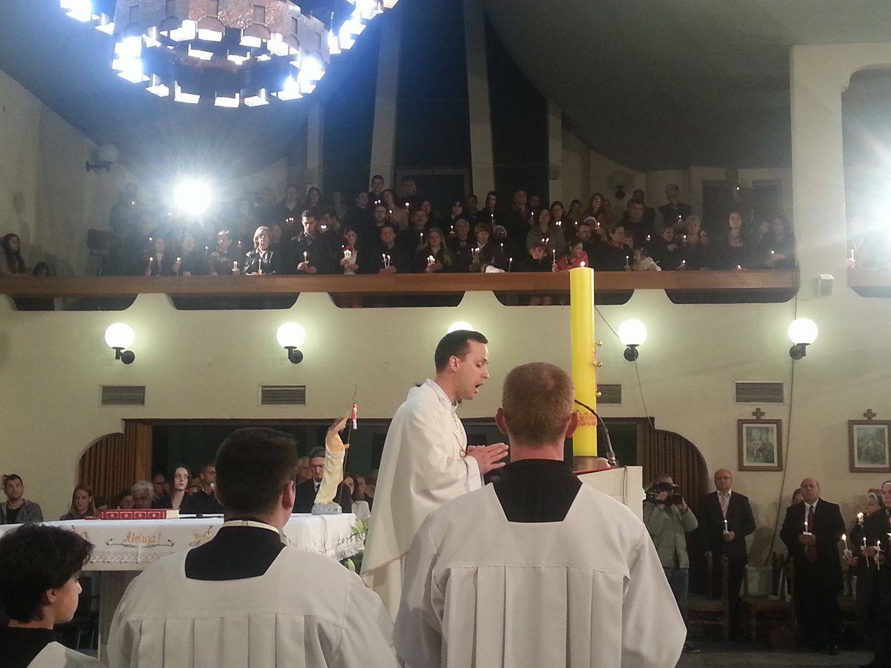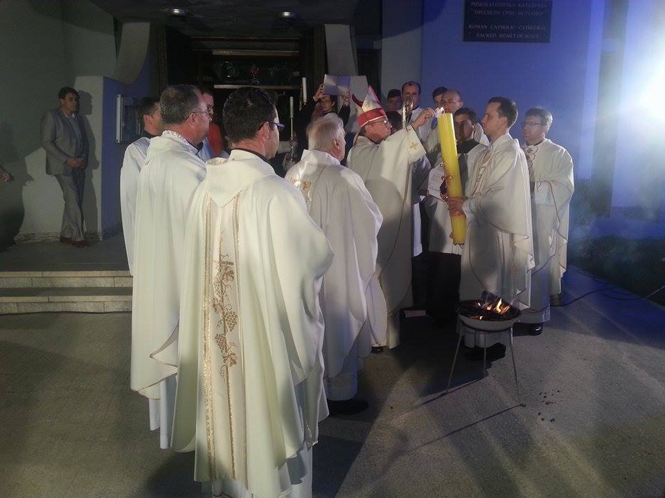 -Ова е ноќ кога можеме да пееме о блажен ли е гревот кој таков и толкав го заслужува Откупителот. Темелен настан вечерва е откажување од гревот и прифаќањето на милоста на крштевањето и сега со обновата на крстните завети, навистина станавме нов човек. Еден таков зафат на Божјата милост во нашиот живот никако не е обред или церемонија, туку настан. Затоа ве повикувам навистина да нурнеме во себе, во својата совест и јасно да го поставиме прашањето: каков е нашиот став кон нашата грешност и дали имаме желба и отвореност да се откажеме од гревот и да прифатиме милост на новото раѓање што ни ја носи верата во Христос Воскреснатиот, рече бискупот Стојанов во вечерашната проповед.