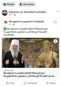 Веста ја презема од познатиот грузиски сајт http://wenews.ge во кој се вели дека „Всленската патријаршија ја врати црквата на Северна Македонија во своите канонски бедра“.