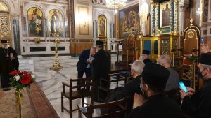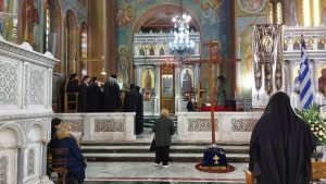 Со литургијата чиноначлствуваше викарниот епископ на Атинскиот Архиепископ, владиката на Ореон г. Филотеј, кој на крајот на верниците им го претстави и го поздрави монашкиот хор од манастирот Бигорски.