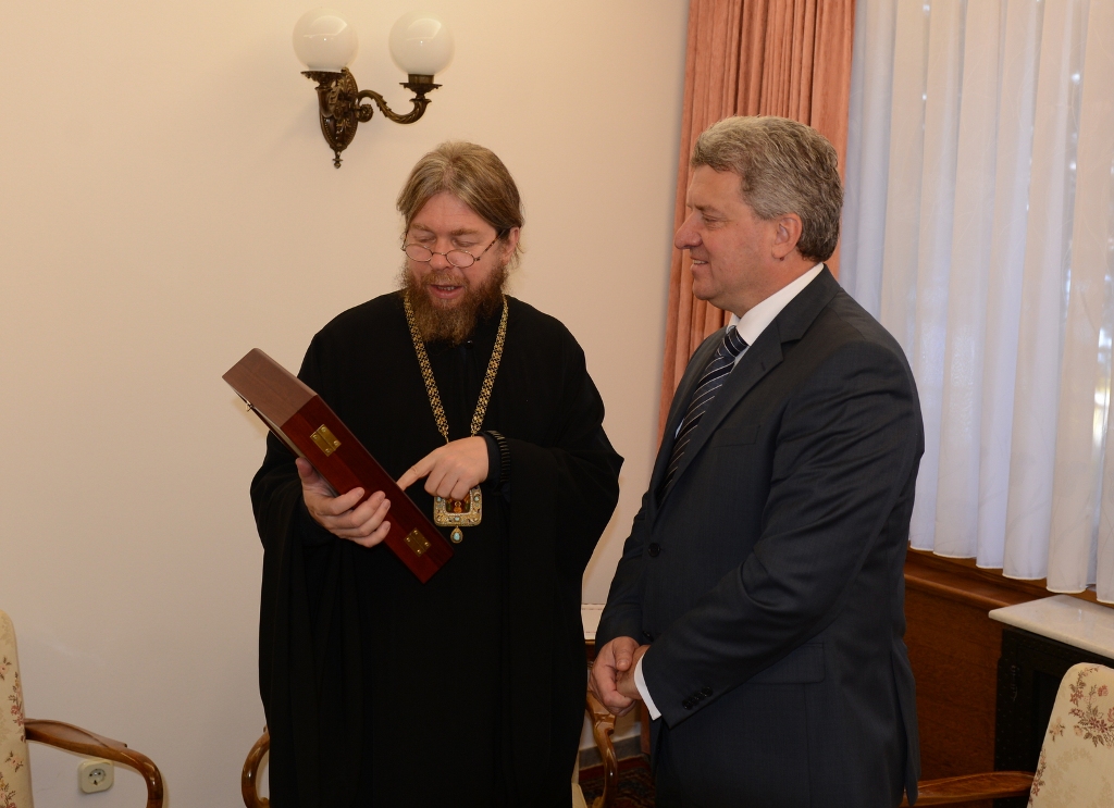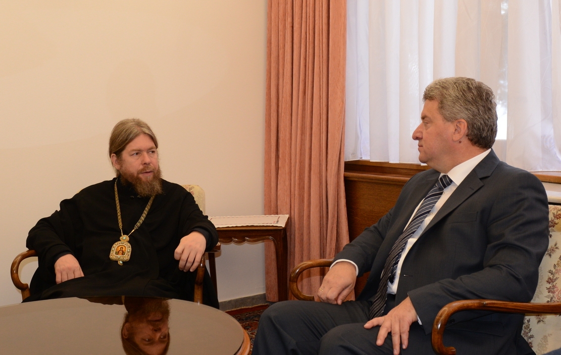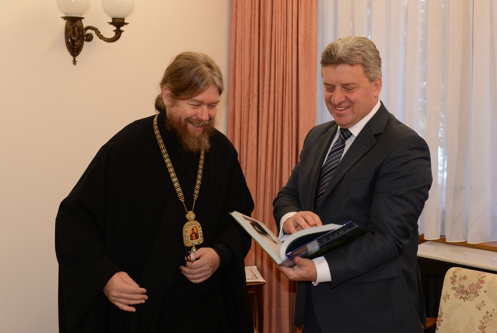 Викарниот епископ на Рускиот Патријарх, кој е во дводневна посета на Македонија денеска во придружба на Архиепископот г.г. Стефан и епископот Хераклејски г. Климент бил во посета на неколку македонски духовни светилишта. Со Епископот Тихон бил и Претседателот Ѓорге Иванов.