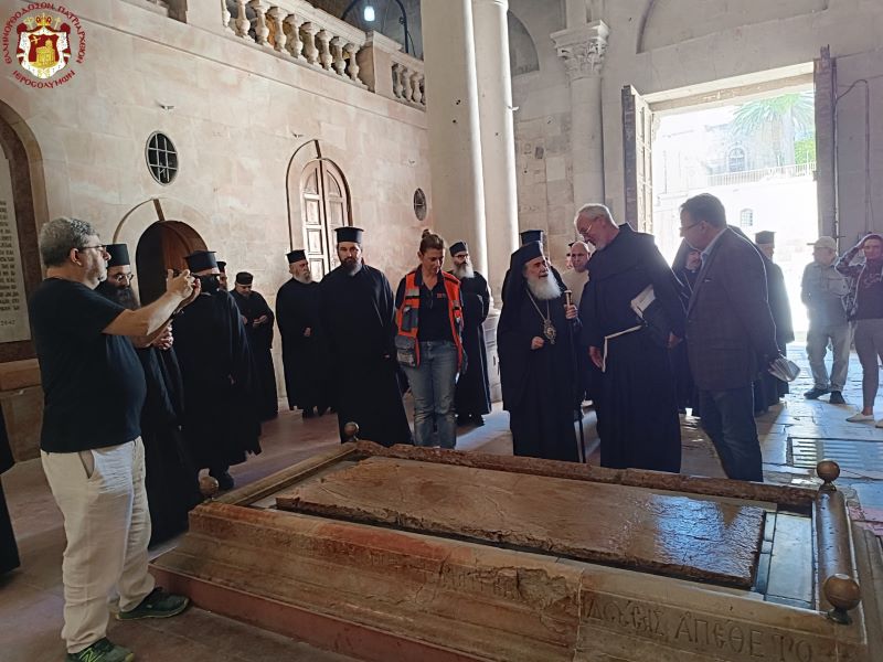 Во средата, 21 август 2024 година, Патријархот, придружуван од отците при братството на Светиот Гроб, отиде во црквата на Светиот гроб за да направи увид на работите за конзервација и санација што ги извршија Францисканците и Ерменците во Ротондата, на подот, на седумте арки и на плочата на помазанието.
