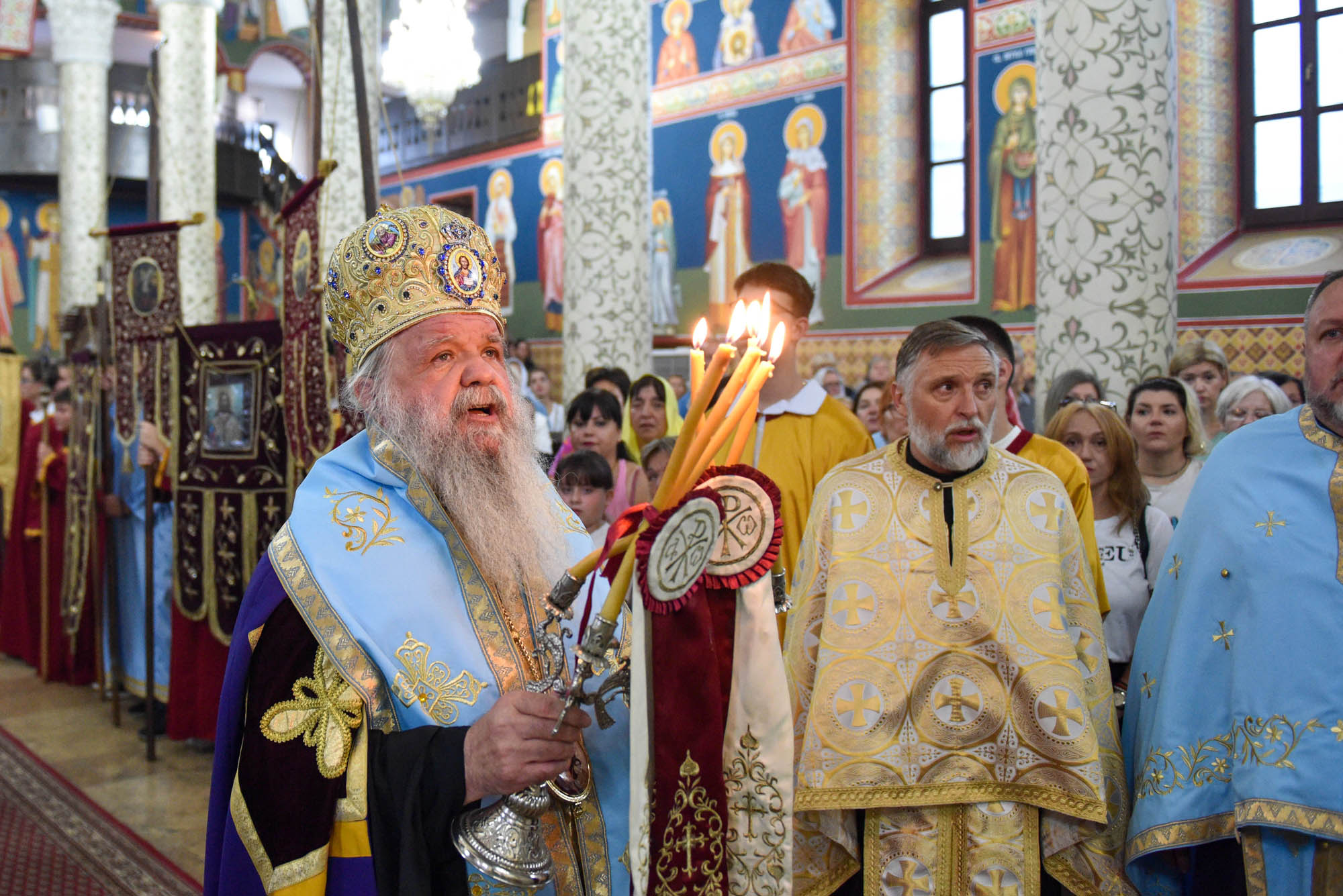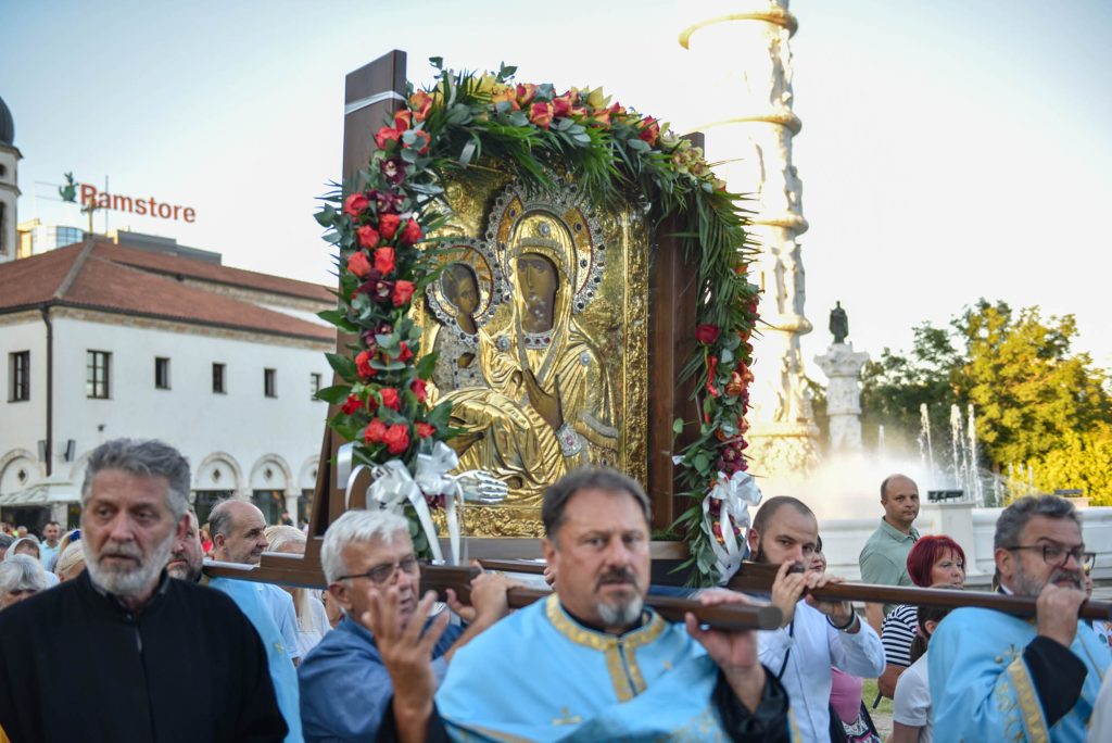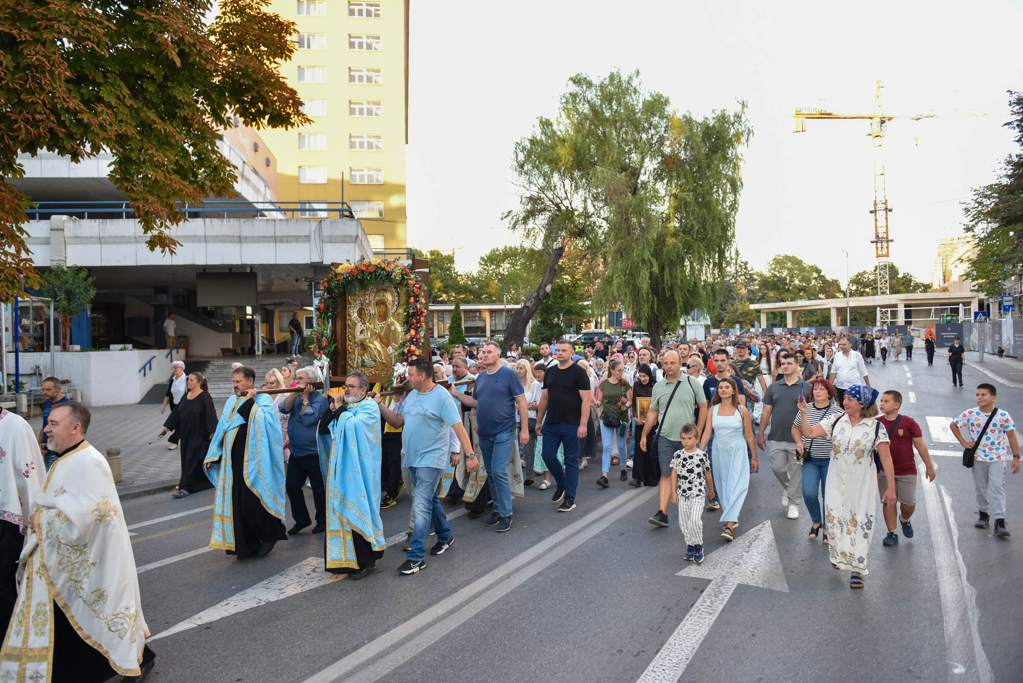По вечерната Богслужба, со која чиноначлствуваше архиепископот Стефан, беше изнесена иконата на Пресвета Богородица – Троеручица. Литијата почна од храмот „Рождество на Пресвета Богородица“ во Скопје и помина низ централното градско подрачје повторно до храмот.