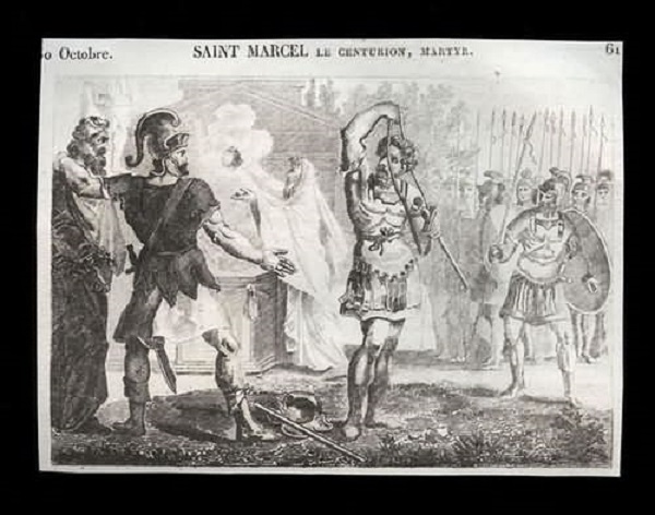 sveti-marcelБил офицер на Римската војска за време на царот Диоклецијан. На 21 јули 298 година сите војници морале да искажат почест пред статуите на царевите Диоклецијан, Максимијан, Костанца и Галерие, кои се сметале за синови на боговите Јупитер и Херкул. Свети Марцел го соблекол официрското дело и се одрекол од офицерската служба велејќи: “Јас сум христијанин и не им се поклонувам на царевите, како на богови, туку за Господ го признавам Исус Христос, синот на Господ, Семожниот”. Тој бил измачуван и убиен. На Марцел, му се молат официрите и другите верници за помош, за зачувување на христијанската вера, како и истрајност во неа.