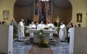 Вчера на Велики Четврток во катедралата Пресвето Срце Исусово во Скопје, свечена Литургија на Вечерата Господова служеше Скопскиот бискуп и Апостолски егзарх во Македонија, монсињор Киро Стојанов во сослушение со скопскиот парох дон Давор Топиќ, бискупскиот канцелар о. Марјан Ристов, монс. Антун Циримотиќ, и професорот на КБФ во Сараево о. д-р. Дубравко Туралија.