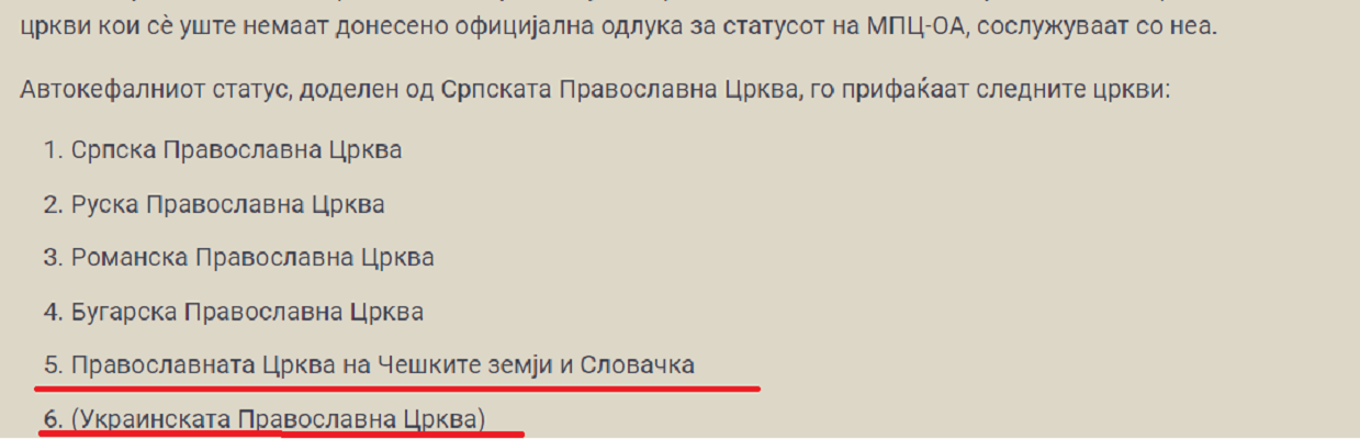Втората манипулација е дека Црквата на Чешка и на Словачка ја признале автокефалноста на МПЦ-ОА. Вистината е сосема поинаква. Оваа црква донесе одлука која се однесува на канонското единство, но во одлуката нема прецизира дали ја прифаќа автокефалноста. Во февруари 2023 донесе одлука во која пишува: „ Светиот Синод ги разгледа и писмата на Вселенскиот Патријарх Вартоломеј за возобновувањето на евхаристиската заедница со епархиите во Северна Македонија, како и писмата на Српскиот Патријарх Порфириј за реинтеграцијата на Црквата во Северна Македонија во канонската структура на СПЦ и за доделувањето автокефалност на Православната Црква во Северна Македонија со патријаршиски и синодален Томос од 20 мај 2022 година. Овие канонски одлуки на сестринските Православни Цркви беа прифатени со благодарност на Бога за надминување на долгогодишниот раскол, стои во официјалната одлука.