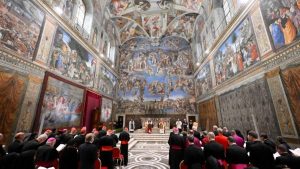 Кралот Чарлс III и неговата сопруга, кралицата Камила, присуствуваа на заедничка служба со папата Лав во Систинската капела, под познатите фрески на Микеланџело. Папата Лав, кој е прв американски папа во историјата на Католичката црква, беше избран токму во мај оваа година.