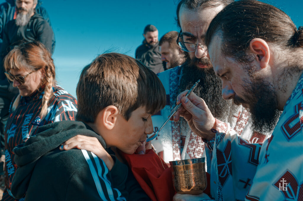 Покрај подвигот, спомнав и други два суштински зборови за духовниот живот: благослов и послушание. Замислете ги монасите пред само пет години – со каква убеденост, со каква цврстина на волјата, бивајќи благословени и испратени да ја извршат волјата на својот Старец, се искачиле овде со товарот на разните материјали, но и со товарот на разните попатни искушенија. Значи каква сила, каков мотив се благословот и послушанието, и колку се овие доблести и комплементарни и зависни една од друга: ниедно послушание нема смисла доколку не е благословено и како секој благослов, на некој начин, да упатува кон послушание. Но дали се и благословот и послушанието сами по себе цел и дали нивната смисла е остварувањето само на волјата на Старецот, на духовникот? Не, тие во полнота се осмислуваат преку тоа што нè приведуваат кон Христа. Ете монасите беа испратени и благословени да го постават Христовиот крст, Нему да Му послужат и угодат, Него да Го оприсутнат на сите што ќе се качуваат овде, и тоа токму преку знакот на Неговата победа над смртта и гревот – тие егзистенцијални непријатели на човекот. Се воодушевувам на оваа промисла на Преосветениот Антаниски – на врвот на планината, којшто претставува триумф на напорот на планинарот, ни се нуди триумфот Христов. Ете какви големи дела за Христа прават благословот и послушанието. И затоа, согледувајќи го ова со своите духовни очи, со своето духовно искуство, светиот старец Ефрем Катунакијски рекол: „Благословот на Старецот е поголем од вселената“. Затоа што, впрочем Христос, и тоа што го правиме во Негова слава, е поголемо од вселената. И токму затоа и вака благословените чеда, во своето искрено признание, кое е производ на тоа што во дејство, во сила и остварување го виделе благословот и послушанието, ќе речат за својот Старец, кој патем во чин е владика, дека е на нивните срца, дека е во нивните срца – затоа што ги благословува и приведува кон дела за возљубениот ни Христос. Но ова може да го познае, да го почувствува, само тој што пребива во послушание и под благослов, всушност во смирение и подвиг.