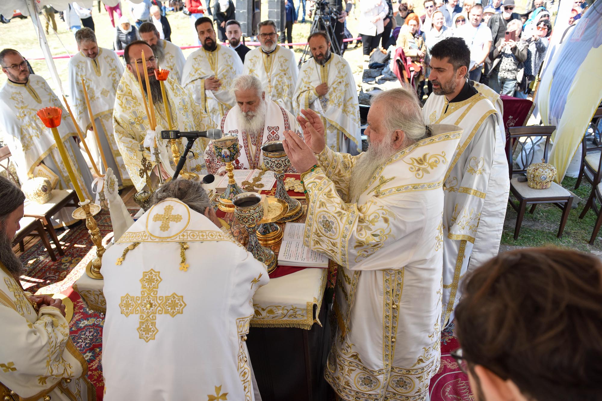 Со литургија чиноначалствуваше Архиепископот Стефан, во сослужение со МитрополититеПетар, Агатангел, Јосиф и Григориј.  На литургијата учествуваше и новиот монах Георгиј.