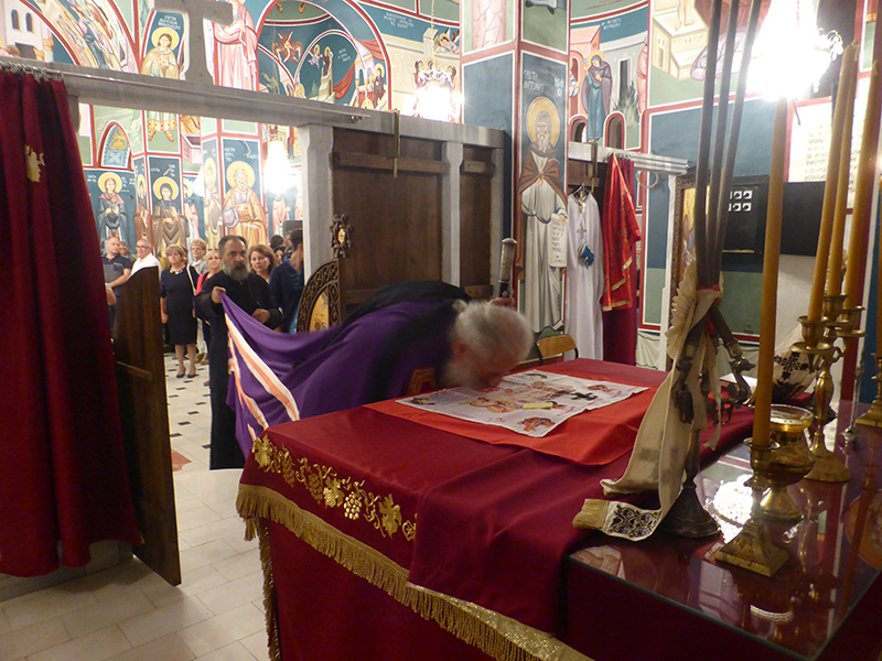 Галерија Мала Богородица во Новаци Date: 23/09/2016 Share post: FacebookTwitterPinterestWhatsApp Митрополитот Преспанско-пелагониски г. Петар во предвечерието на празникот Рождество на Пресвета Богородица, служел празнична Вечерна Богослужба во храмот посветен на Рождеството, во Новаци, Битола. ГАЛЕРИЈА: Previous articleОбновена црквата во ШлеговоNext articleПочина протоѓакон Славе П. Пројковски, секретарот на Архиепископот Ангелариј LEAVE A REPLY Cancel reply Comment: Please enter your comment! Name:* Please enter your name here Email:* You have entered an incorrect email address! Please enter your email address here Website: Save my name, email, and website in this browser for the next time I comment. Кога почнува Ифтарот денеска? Editor - 07/06/2016 Празник на појасот на Пресвета Богородица Празници Светите Александар, Јован и Павле, патријарси Цариградски Празници Отсекување на главата на Свети Јован Крстител Празници Од разбојник до светител Празници Денеска е преподобен Пимен Велики Празници