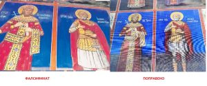 Пред една недела српските медиуми објавија скандалозно преименување на дел од фреските во манастирската црква, а според приложените фотографии од страна на КИЦ „СПОНА“ преименувањето било направено на јужниот ѕид на црквата на кој се претставени царот Урош, цар Лазар, кралот Милутин и Стефан Дечански, и кои според СПОНА биле преименувани во Свети Цар Владимир Киевски, Свети Цар Јован Милостиви, Свети Констатин Велики и Свети Никифор Фока, како и на ликовите на Свети Никодим и Стефан Првовенчани на северниот ѕид, кај кои биле ставени имињата на Свети Константин Кавасила и Свети Јустинијан Први.