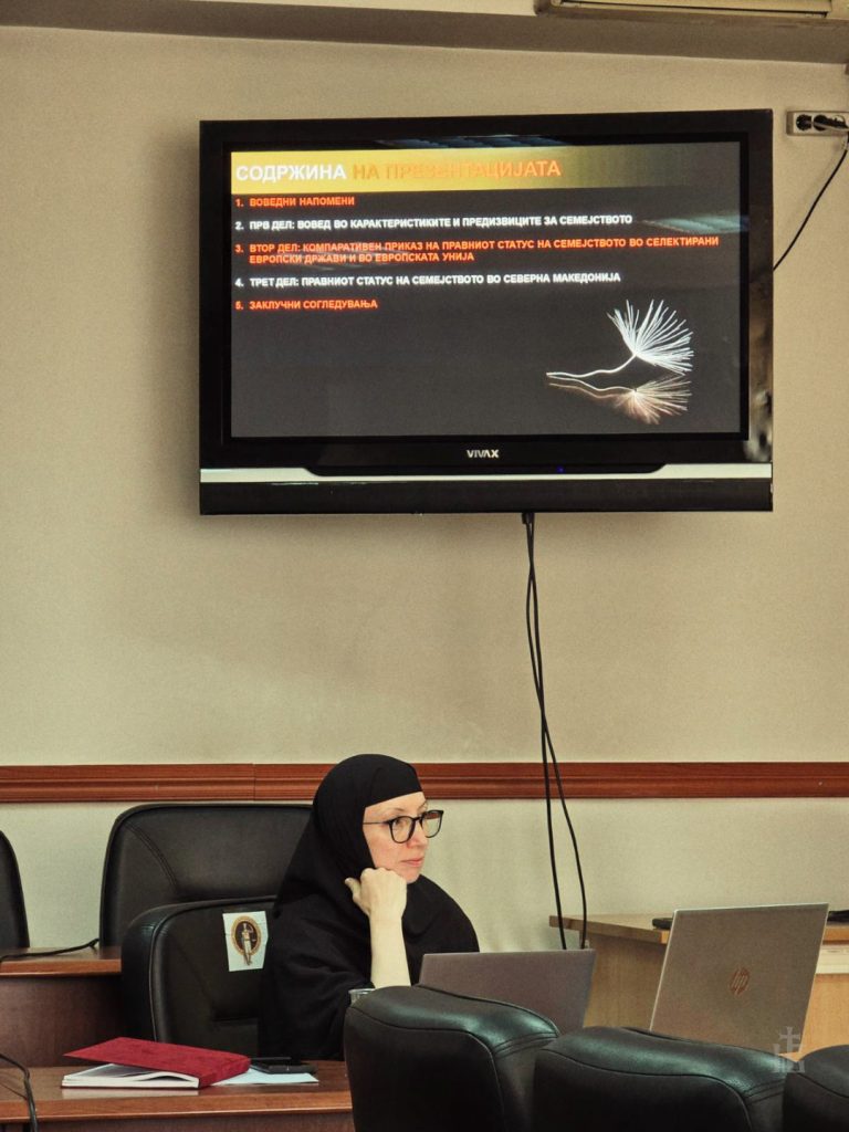 Сестра Ефимија од Манастирот на Свети Георгиј Победоносец во Рајчица одбрани магистрески труд на катедрата за Уставно право и политички систем, на Правниот факултет Јустинијан Први. Магистерскиот труд носи наслов: „Карактеристики и предизвици на традиционалната форма на семејството. Компаративна анализа со посебен осврт на Северна Македонија“, а е под менторство на проф. д-р Александар Спасеновски. Членови на комисијата при одбраната биле и реномираните професори: проф. д-р Рената Дескоска и проф. д-р Елена Игновска.