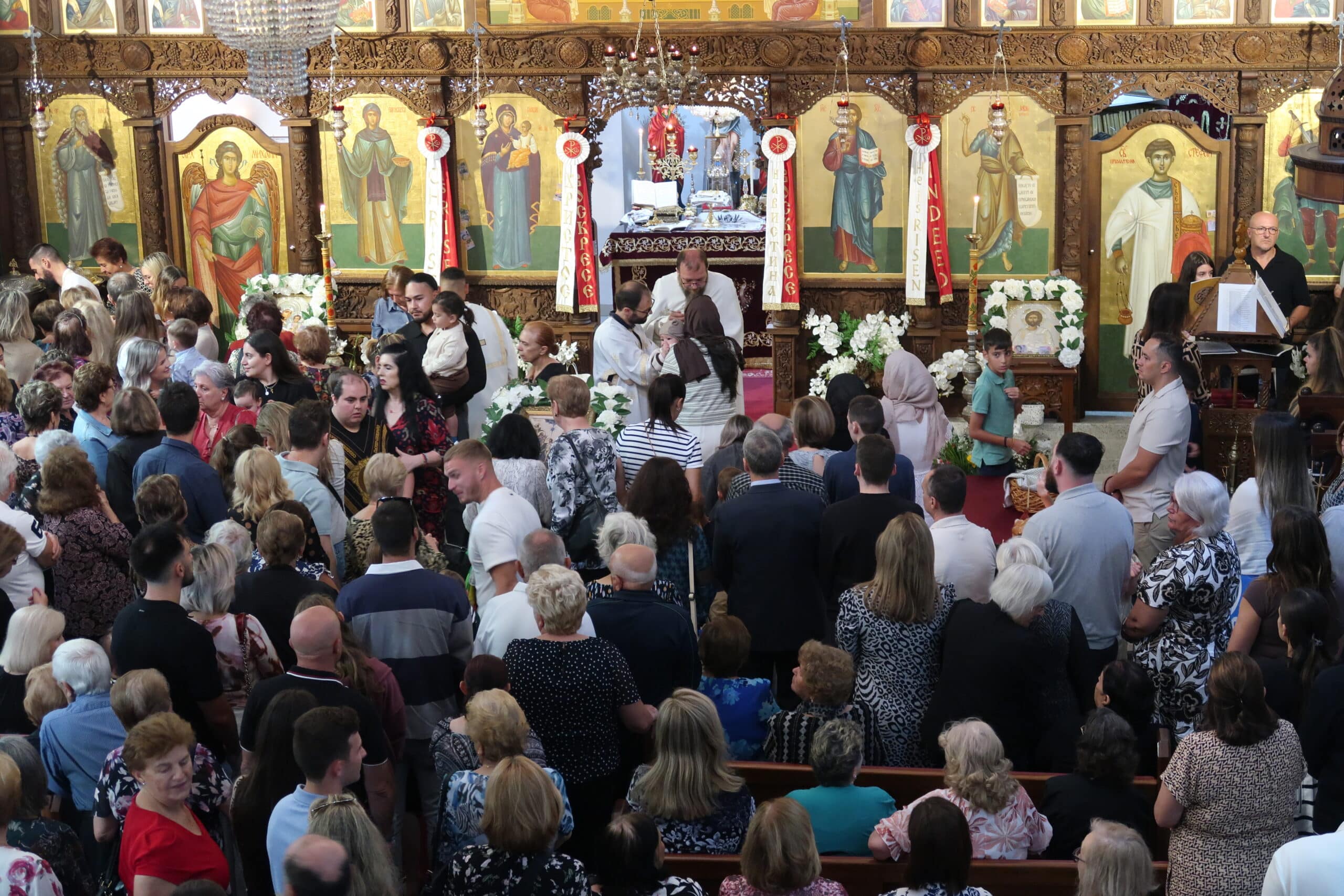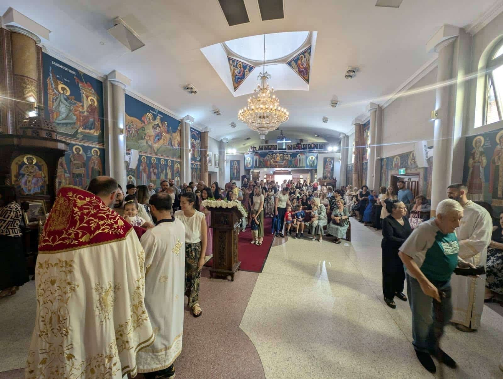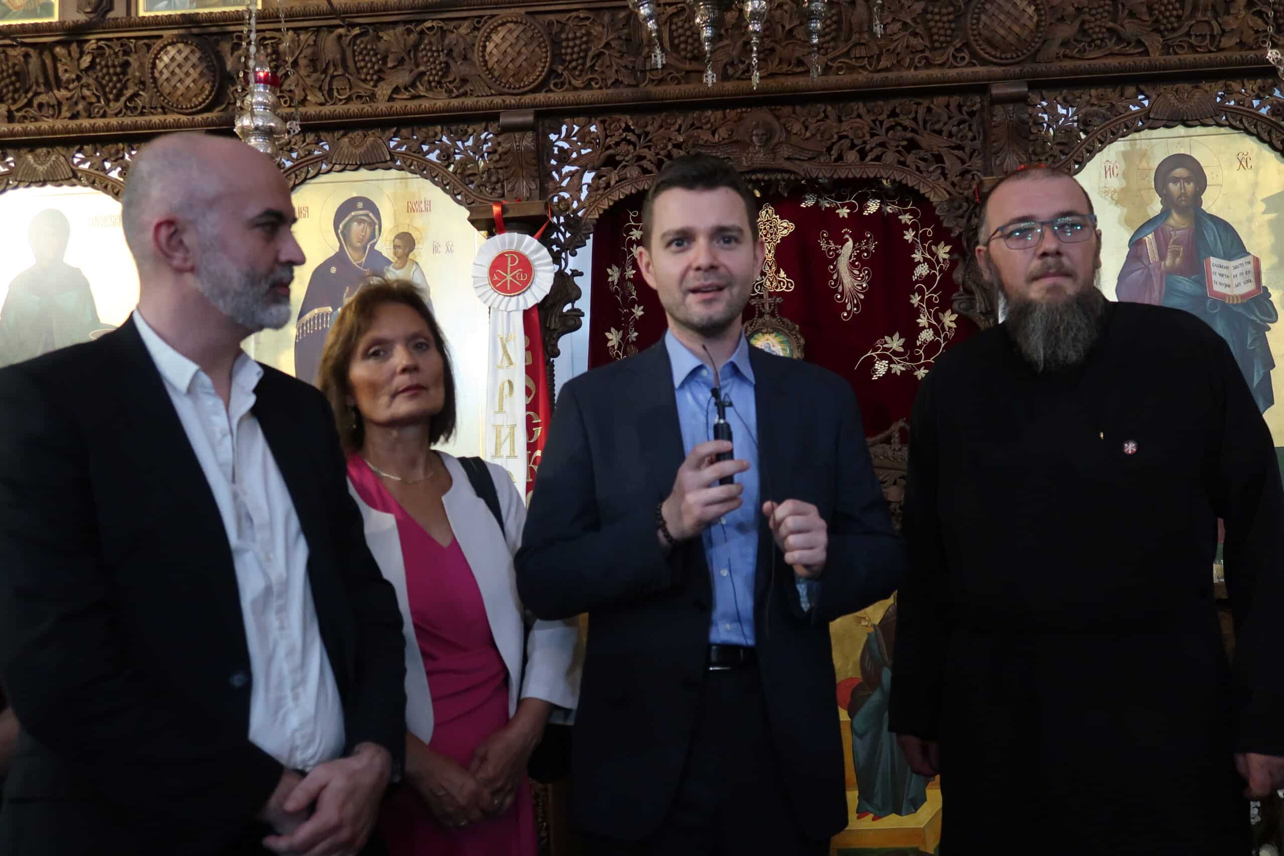 -Министерот Муцунски беше најтоплосрдечено пречекан од Управата на храмот, од чие што име парохискиот свештеник јереј Владо Недески му посака топло добредојде и го запозна со историјатот и дејноста на оваа црковна општина. Министерот го искажа своето задоволство дека денес, покрај многубројниот народ се чувствува како дома, велат од Епархијата на МПЦ-ОА.