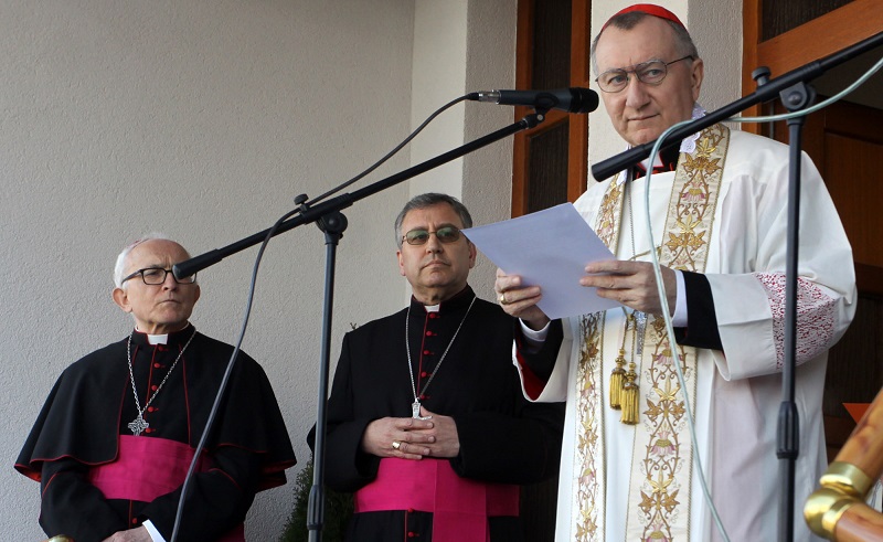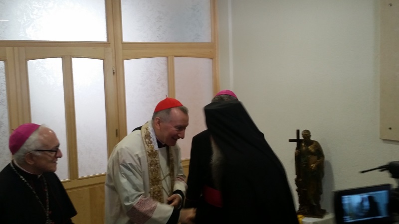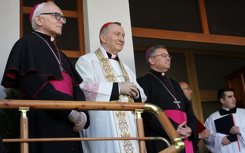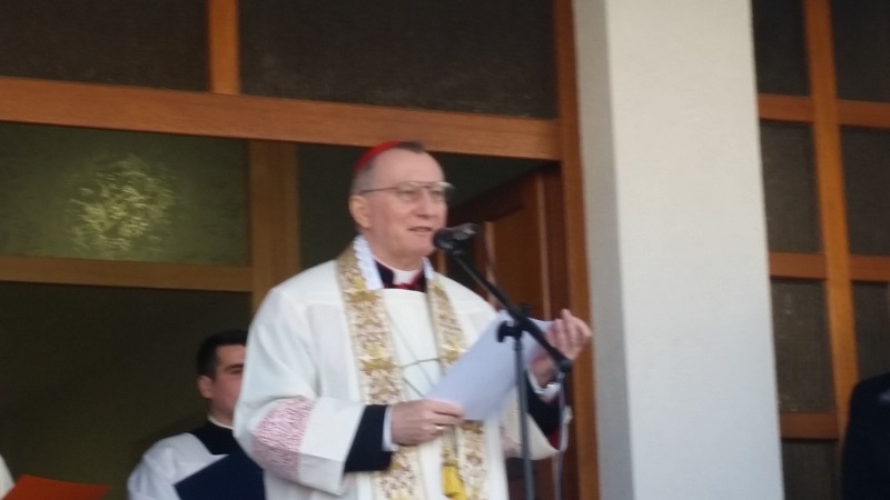 Заедно со Паролин во негова придружба беше и Скопскиот бискуп и Апостолски егзарх во Македонија монс. Киро Стојанов и апостолскиот нунциј монс. Анселмо Гвидо Пекорари.