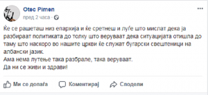 Меѓу ретките и тоа индиректни коментари повразни на оваат тема е последниот фејсбук статус на владиката г. Пимен. Еве што напиша отец Пимен на се почестите коментари во јавноста.