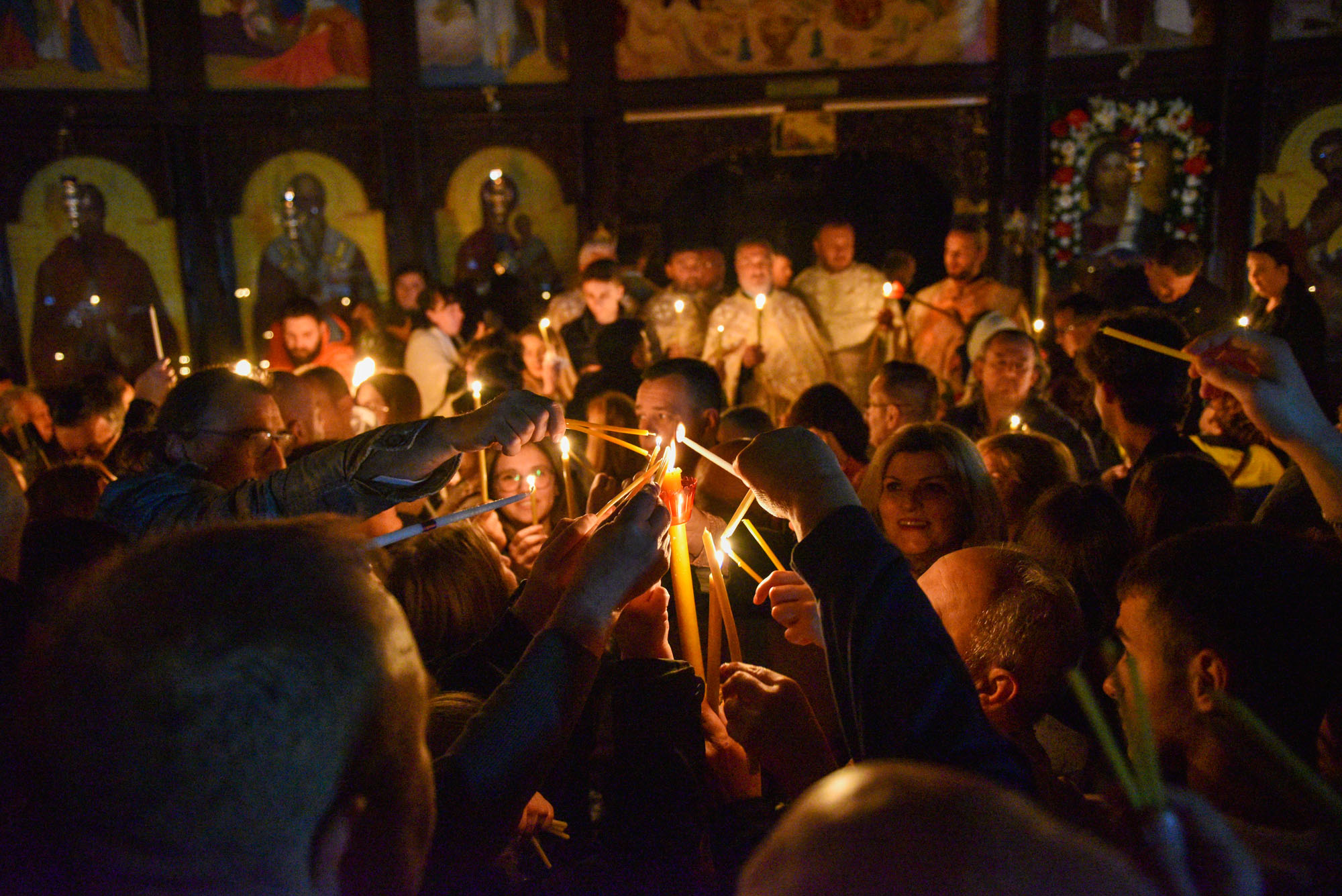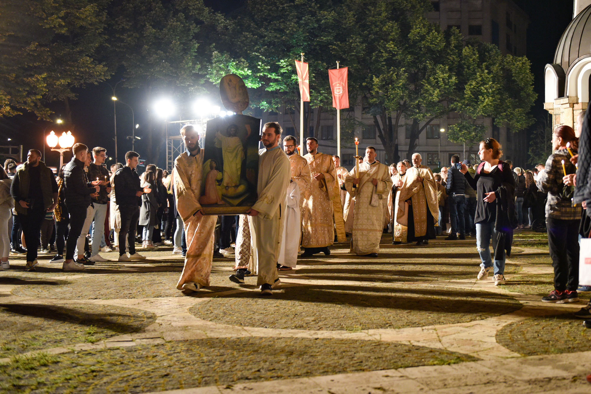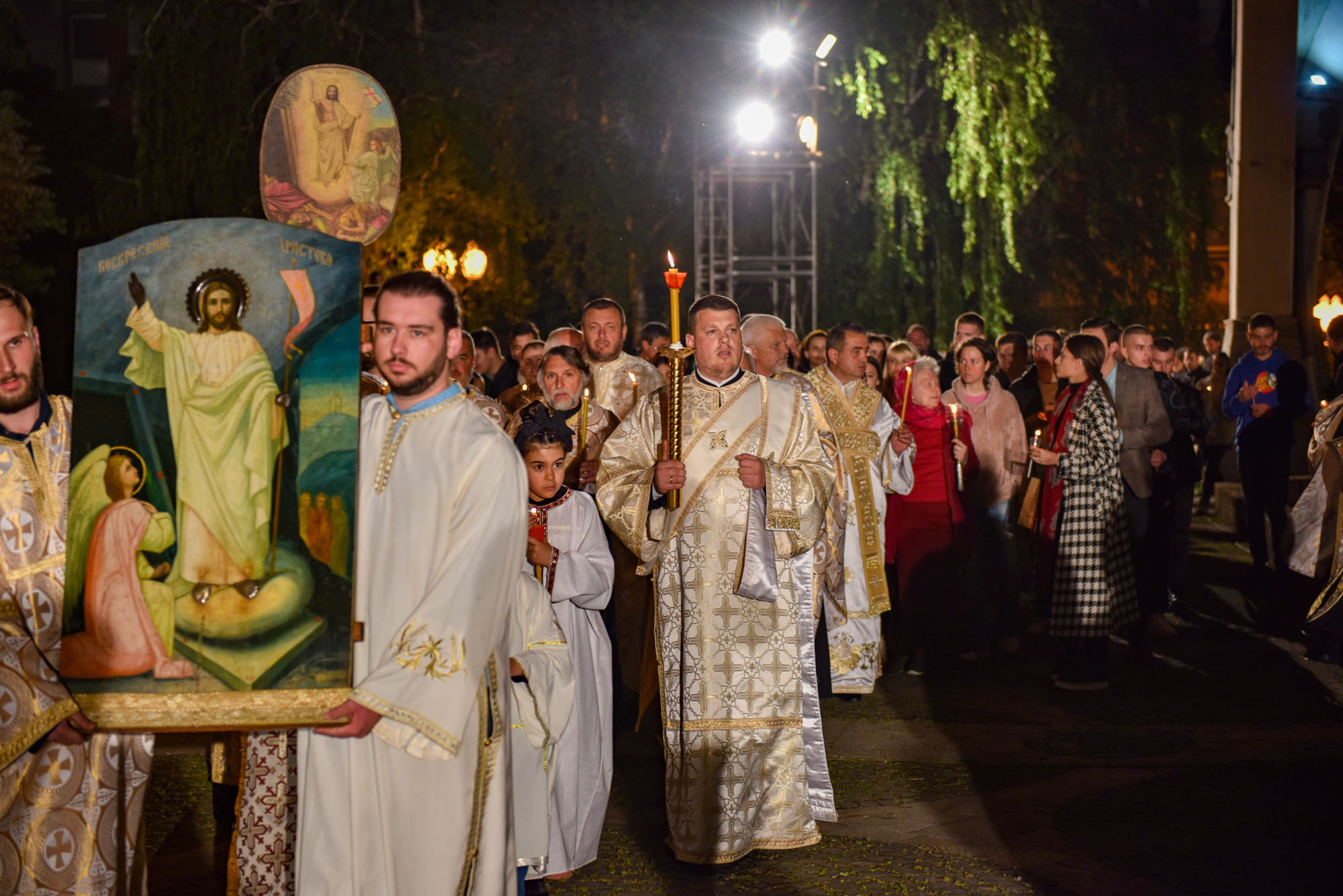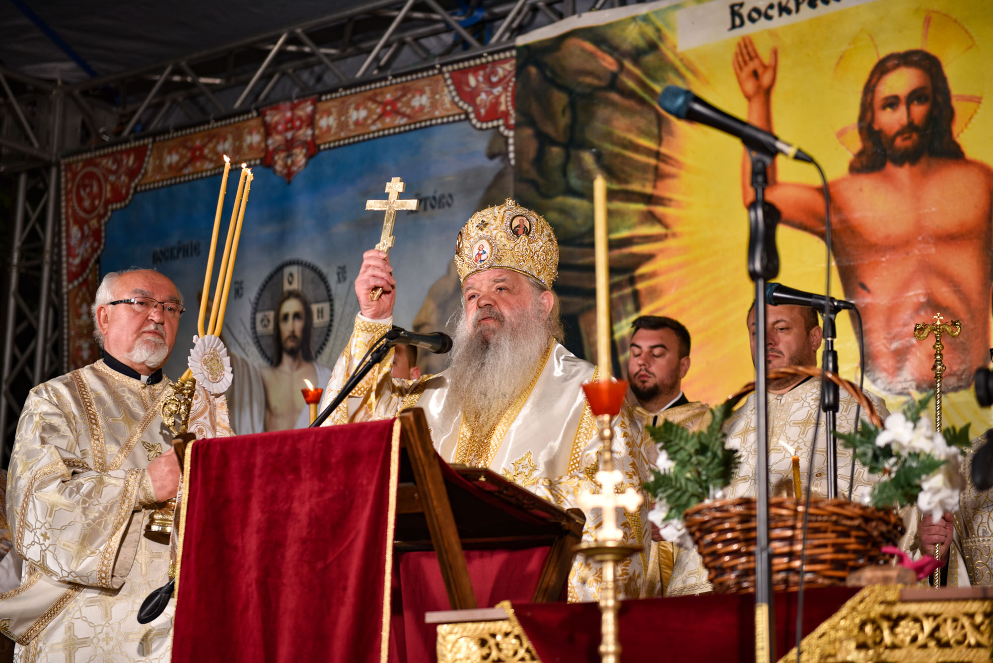 Торжествената прослава на победата на животот над смртта започна во ноќта на 4 спроти 5 мај со раздавање на светиот Благодатен Оган, по што беше отслужена Пасхална Полуноќница. На неа, радосно пеејќи „Воскресението Твое Христе Спасителу, ангелите го воспеваат на небесата, а и нас на земјата удостој нè, со чисто срце да Те славиме“, Архиепископот, свештенослужителите и верниот народ извршија трократен опход околу Соборниот храм. Изутринава, пак, Архиепископот претстојуваше на Пасхалната Литургија на која беше прочитано и Велигденското послание на Светиот архијерејски синод на Македонската Православна Црква. По завршетокот на Литургијата, беше прочитано пасхалното Евангелие на многу јазици. ХРИСТОС ВОСКРЕСЕ!, велат од Скопската епархија.