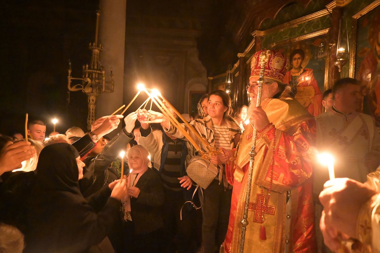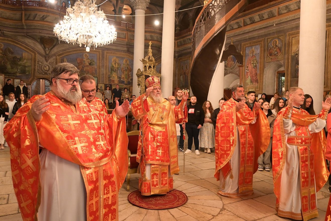 Во Соборниот храм „Св. вмч. Пантелејмон“ во Велес, Митрополитот овардарски  Агатангел ја објави најторжествената и најрадосната вест на Православието, а потоа отслужи Велигденска Воскресна Литургија.