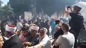 Израелската полиција испукала шок-бомби за да ги растера Палестинците за време на судир на Ридот на храмот во Ерусалим, каде што се собрале десетици илјади муслимански верници за Курбан Бајрам.