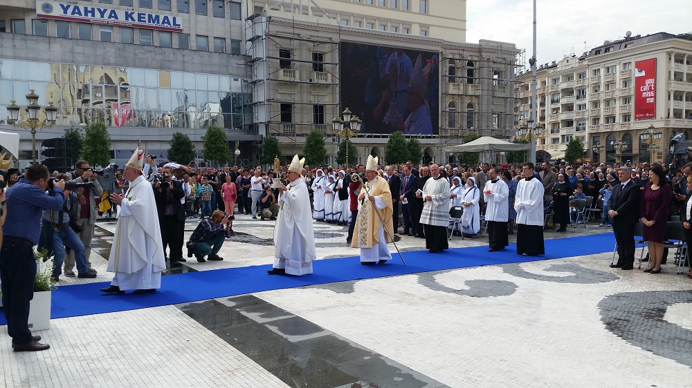 Светата понтификална миса што се одржа на плоштадот „Македонија“ беше финале на „Татковинската прославата денови на Света Мајка Тереза“, што Македонија ја организираше во чест на прогласувањето на Скопјанката за Светица. Мисата ја предводеше специјалниот папски кардинал, сараевскиот надбискуп, кардиналот Винко Пулиќ во сослужение со Скопскиот бискуп и Апостолски егзарх, Киро Стојанов и свештеници на Католичката црква.