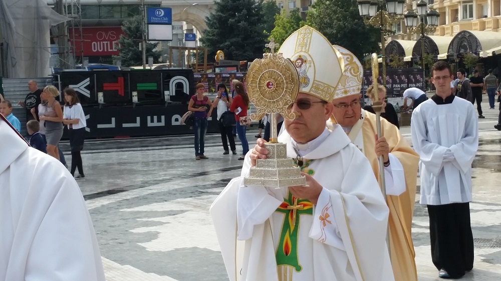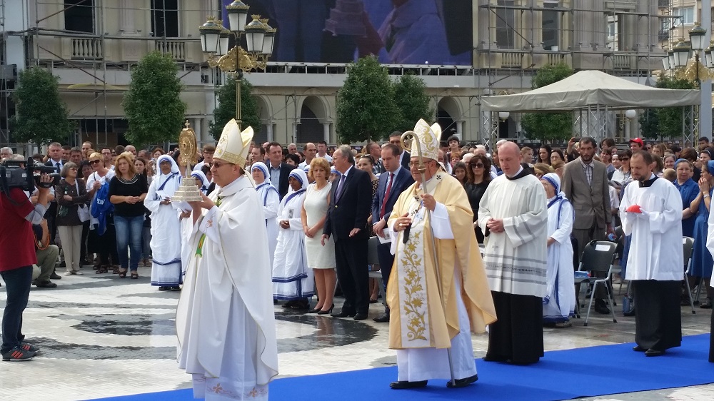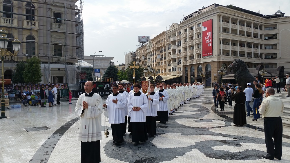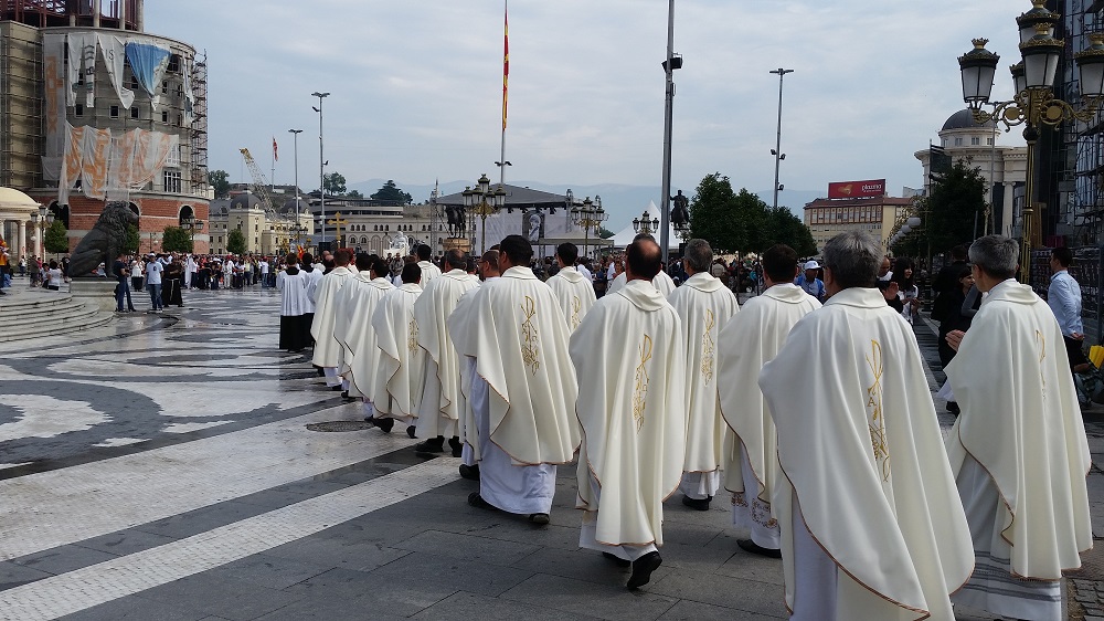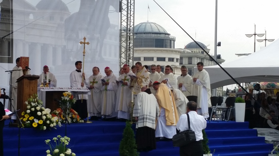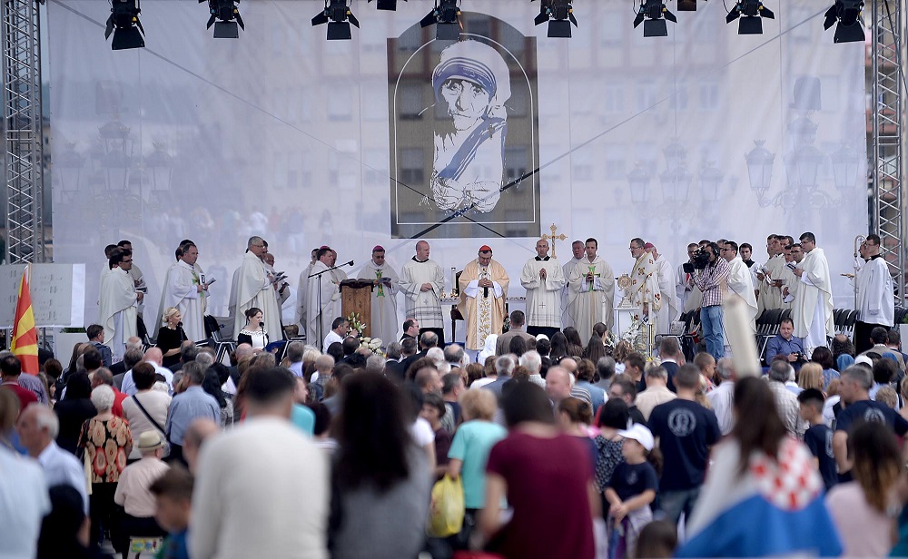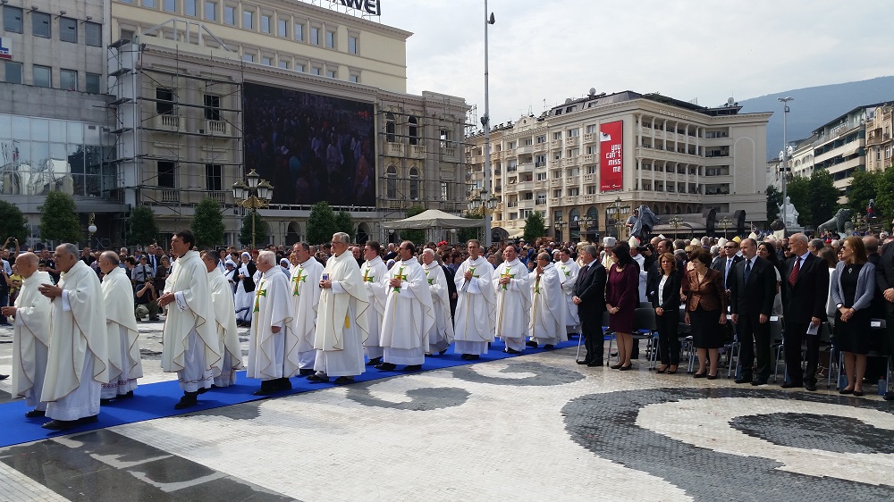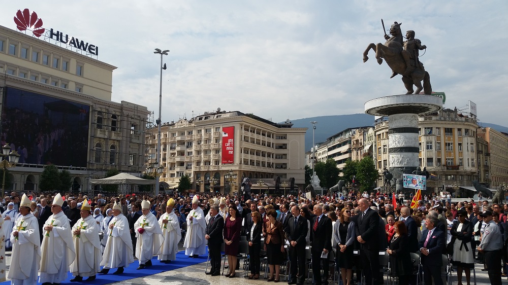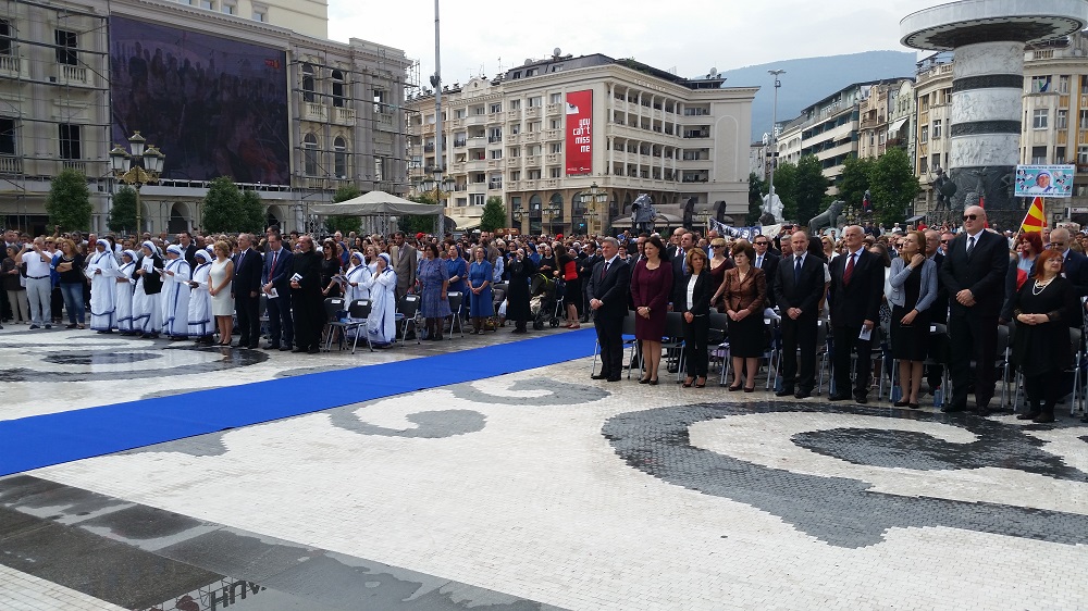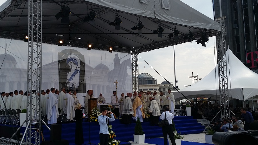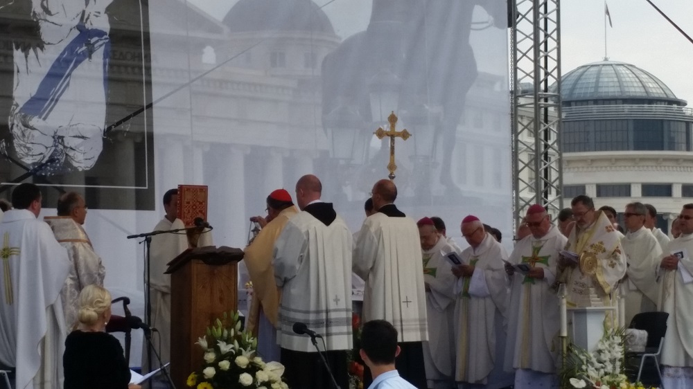 Светата понтификална миса што се одржа на плоштадот „Македонија“ беше финале на „Татковинската прославата денови на Света Мајка Тереза“, што Македонија ја организираше во чест на прогласувањето на Скопјанката за Светица. Мисата ја предводеше специјалниот папски кардинал, сараевскиот надбискуп, кардиналот Винко Пулиќ во сослужение со Скопскиот бискуп и Апостолски егзарх, Киро Стојанов и свештеници на Католичката црква.
