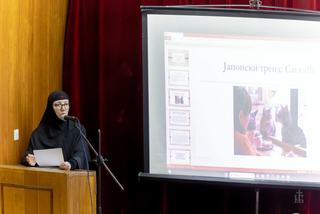 Но, видете сега како јапонските експерти го пресретнале овој проблем, какви мерки понудиле за да ги заштитат младите луѓе од оваа деструктивна појава што го продлабочува отуѓувањето и влијае на драстичниот пад на наталитетот! Во кафулињата, каде се движеле младите луѓе за време на паузата од работа – секако сами, бидејќи нели не сакаат друштво – им се нудела и мачка. Мачката им правела друштво! А зошто мачка? За да имаат контакт со живо суштество.