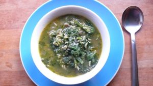 Спанаќот се мие и се сецка, кромидот се лупи и се сецка на ситно, па се динста во длабок сад со малку вода и се додаваат морковите излупени и исецкани на коцки. Кога морковите ќе се сварат, се додаваат исецканите пиперки и спанаќот и откако сето тоа убаво ќе се издинста, се додава зачинот и буковецот, се остава уште две до три минути и потоа се додава вода. Откако ќе почне да вари, се додава доматното пире и сенфот, а после неколку минути варење се додава пченкарното брашно растворено со ладна вода и оризот. На крај се додава малку бибер, сол по вкус и се остава уште малку да повари.