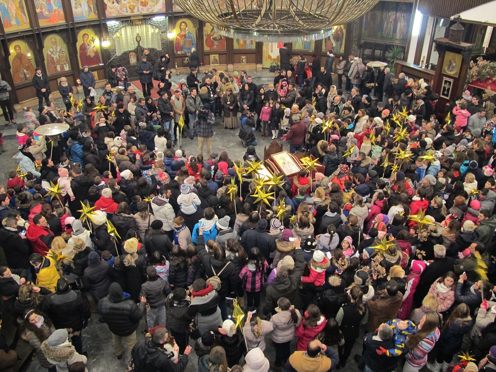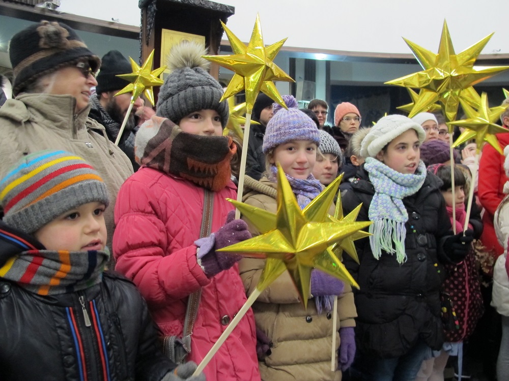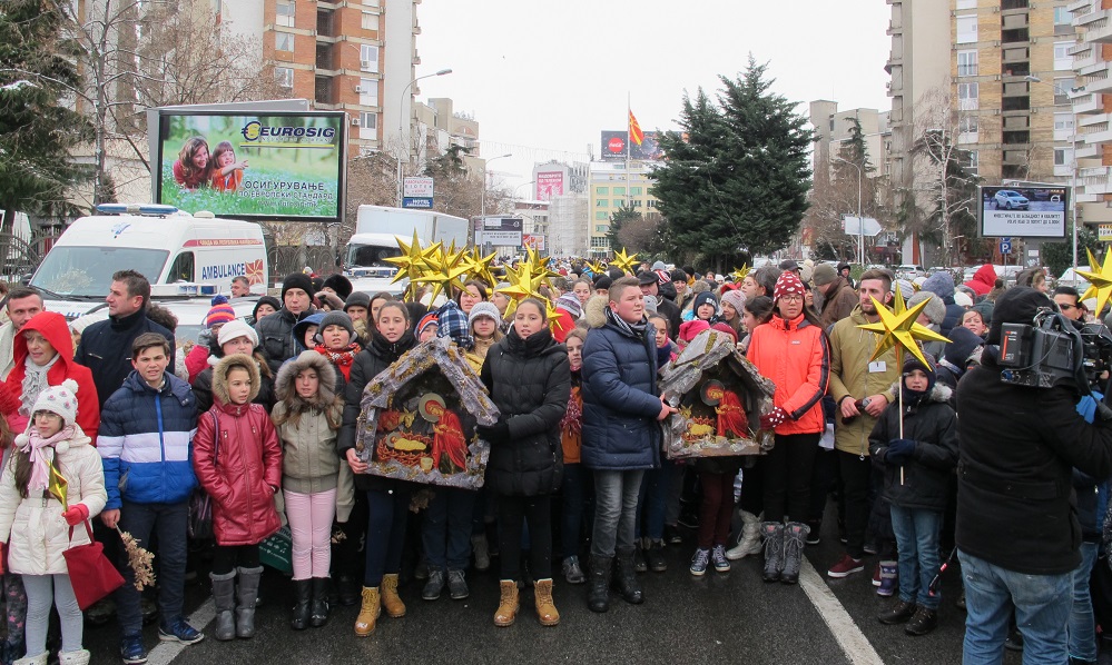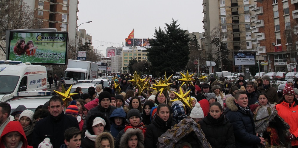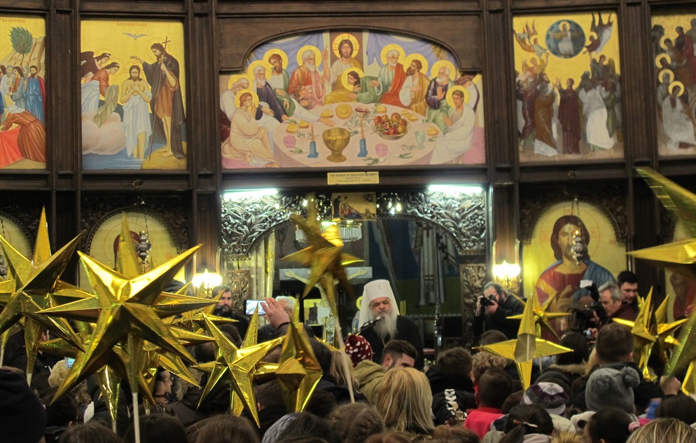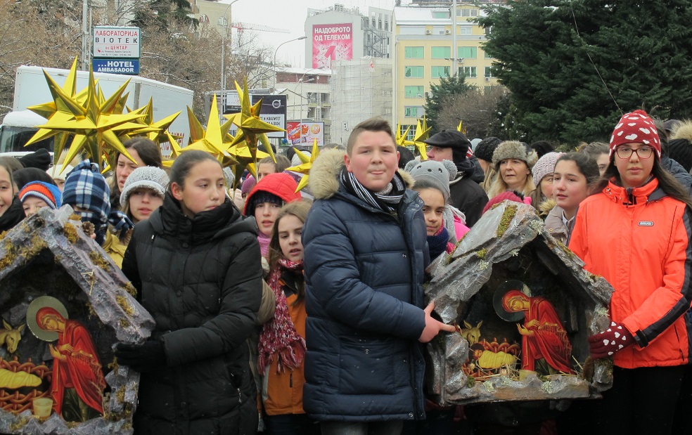 Повеќе од 2000 дечиња од неколку цркви во Скопје, бадниковата поворка во која низ градот ја пееја коледарската песна Вечниот Бог, ја завршија во Соборниот Храм, Свети Климент Охридски, каде ги пречека Архиепископот г.г. Стефан.