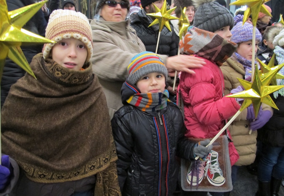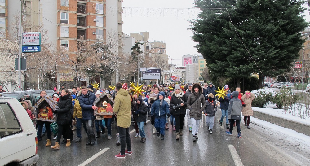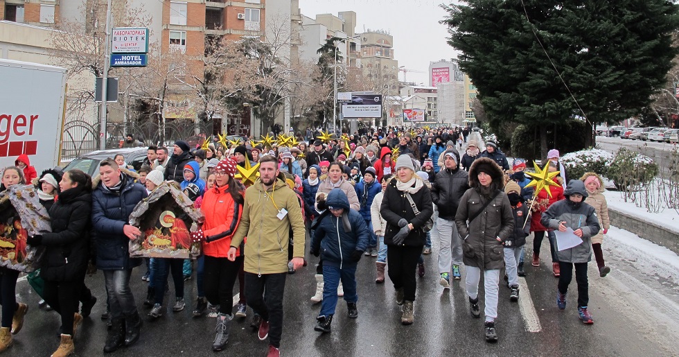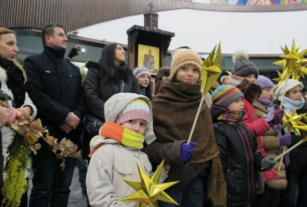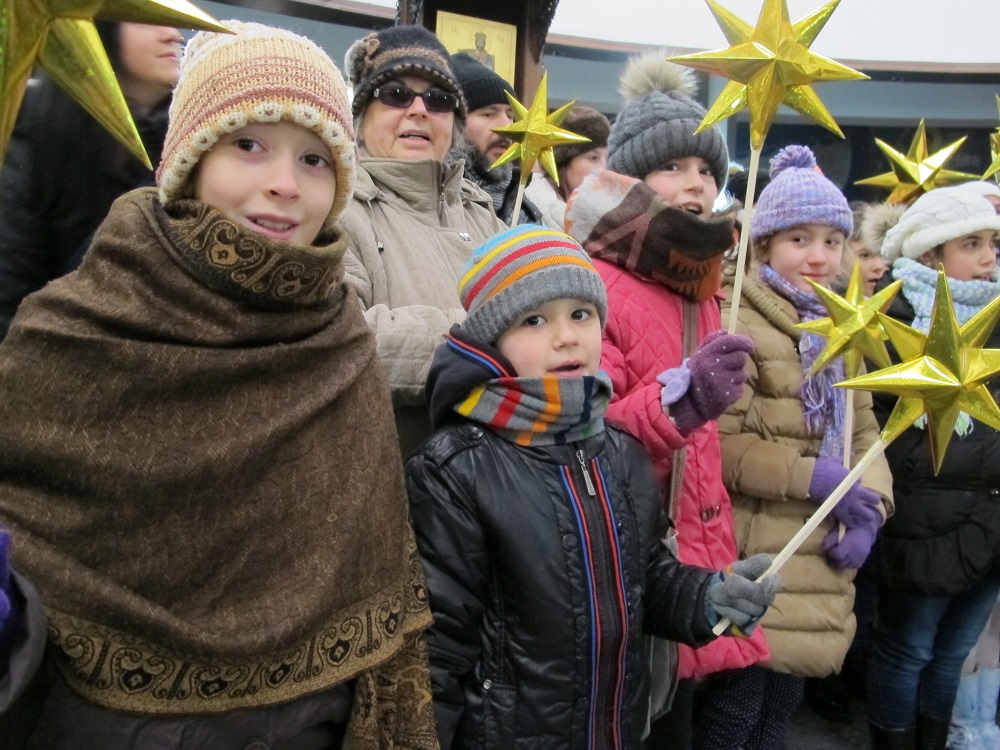 Повеќе од 2000 дечиња од неколку цркви во Скопје, бадниковата поворка во која низ градот ја пееја коледарската песна Вечниот Бог, ја завршија во Соборниот Храм, Свети Климент Охридски, каде ги пречека Архиепископот г.г. Стефан.