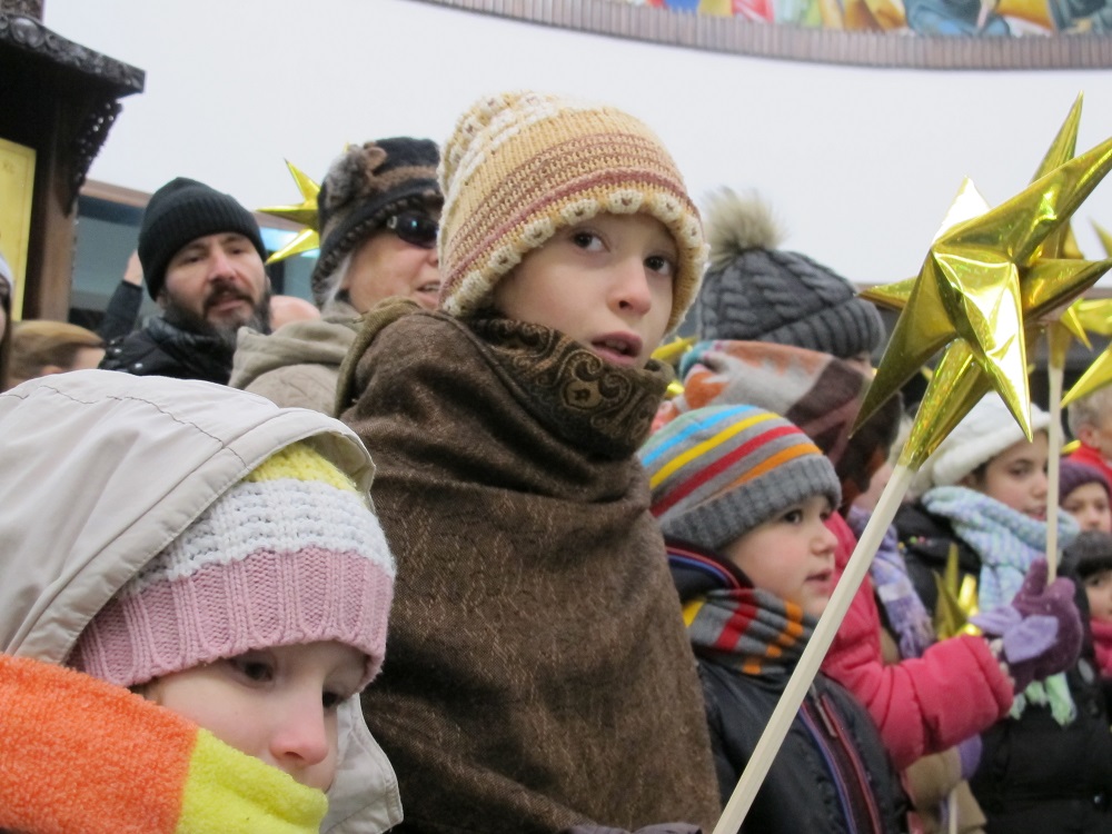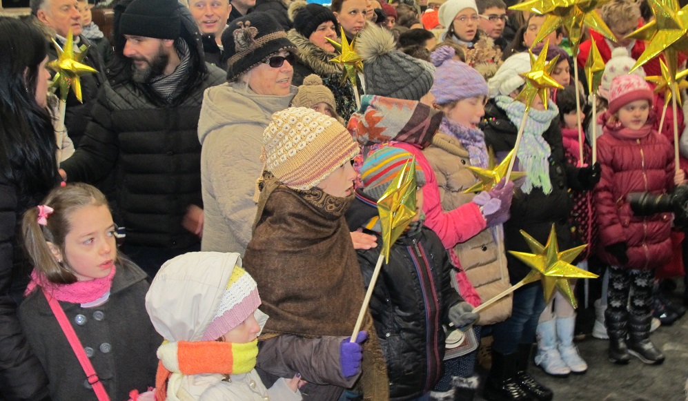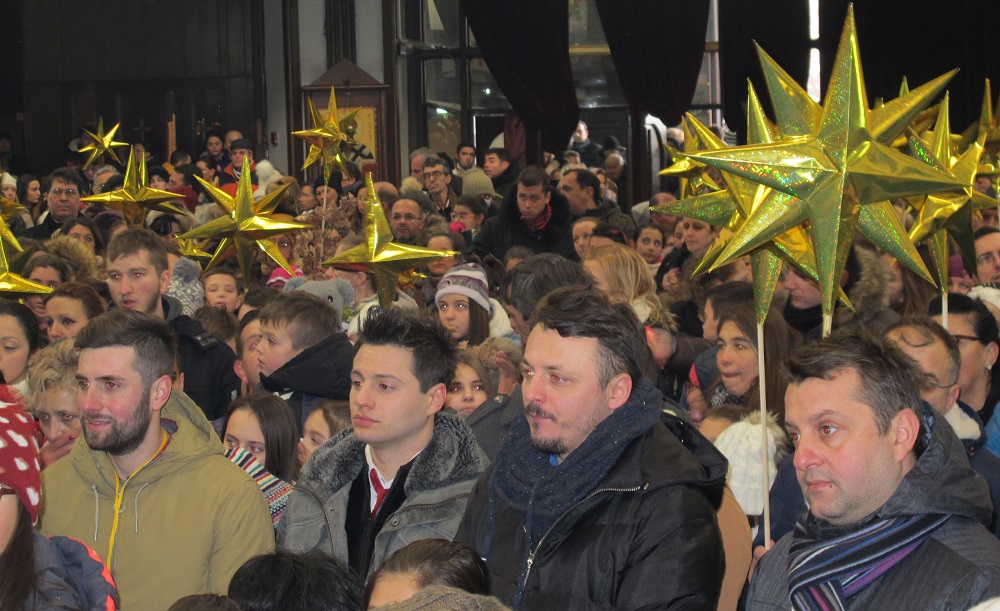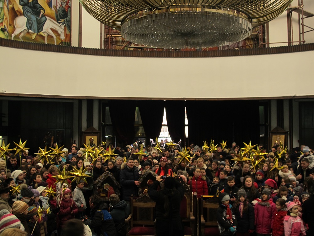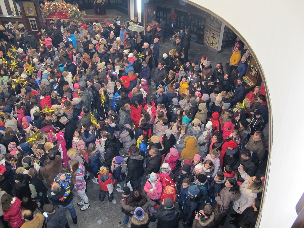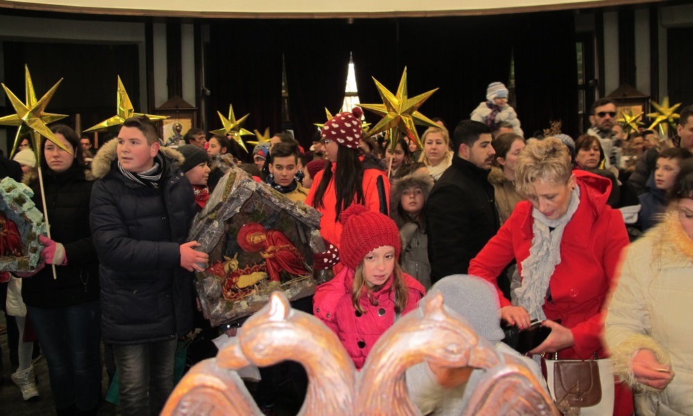 Соборниот храм, никогаш не бил поисполнет со дечиња, како на денешниов Бадник. Коледарчињата ја испејаа Вечниот Бог пред Архиепископот, кој потоа им подели пакетчиња на сите учесници во годинашнава бадникова поворка.