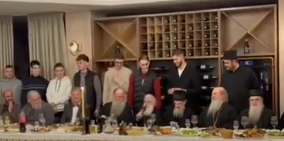 Опуштената атмофсреа покажува дека нашиот владика има големи пеачки капацитети, кои му гарантираат фаворитска позиција во „Никад ни је касно“.  Што е право право е!….