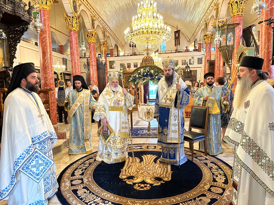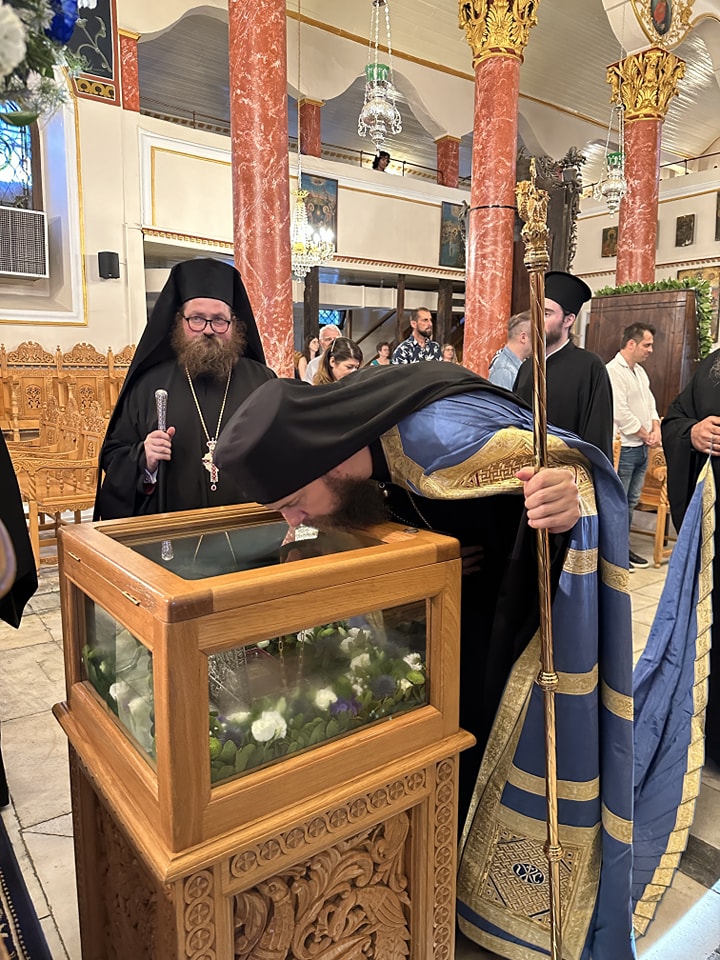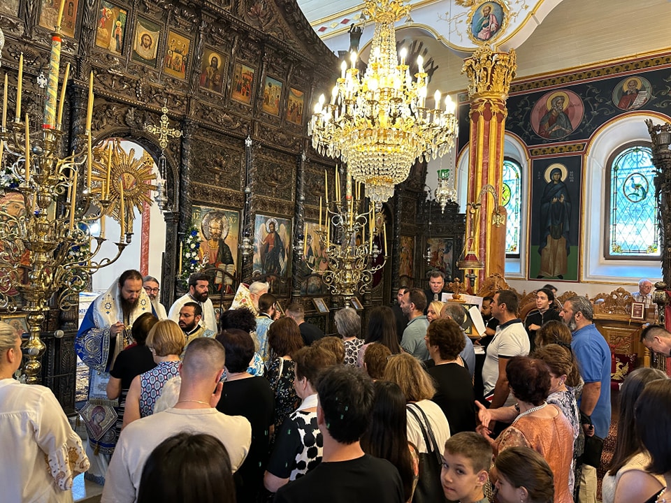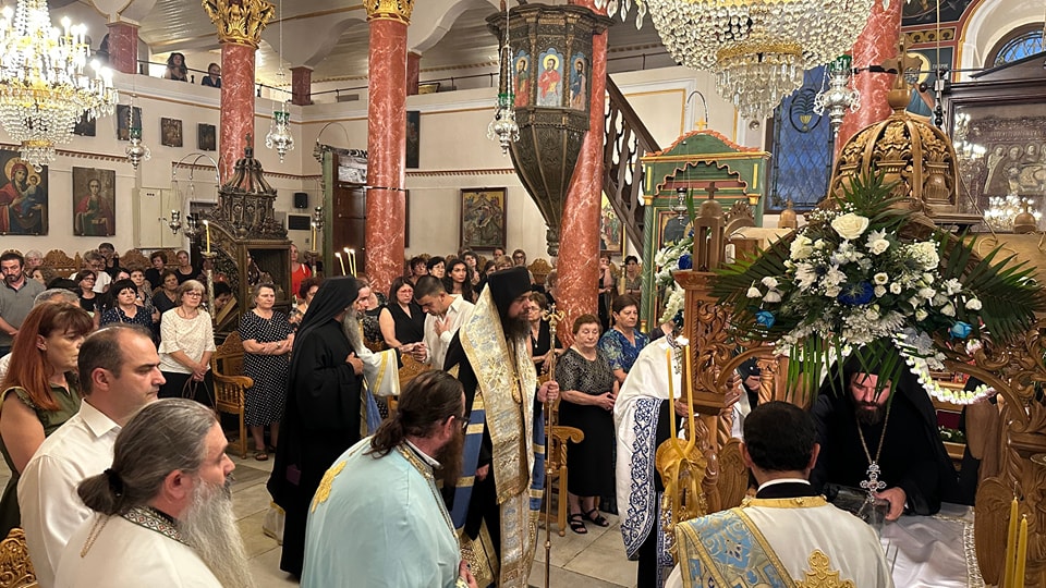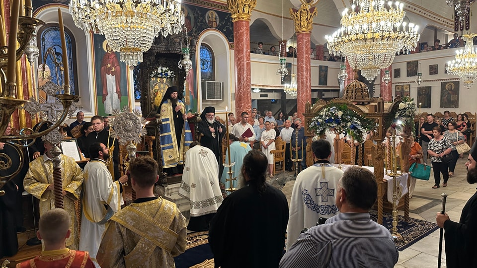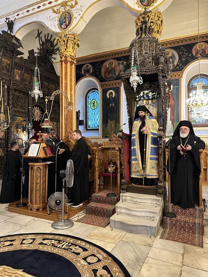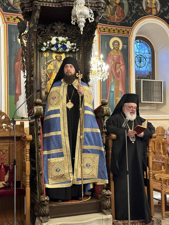 Владиката Јаков во предвечерието на празникот и во молитвено присуство на Митрополитот домаќин, ја служел вечерната богослужба во храмот „Успение на Пресвета Богородица”, а потоа учествувал во свечената литија низ градот, објави Тивериопол.мк.