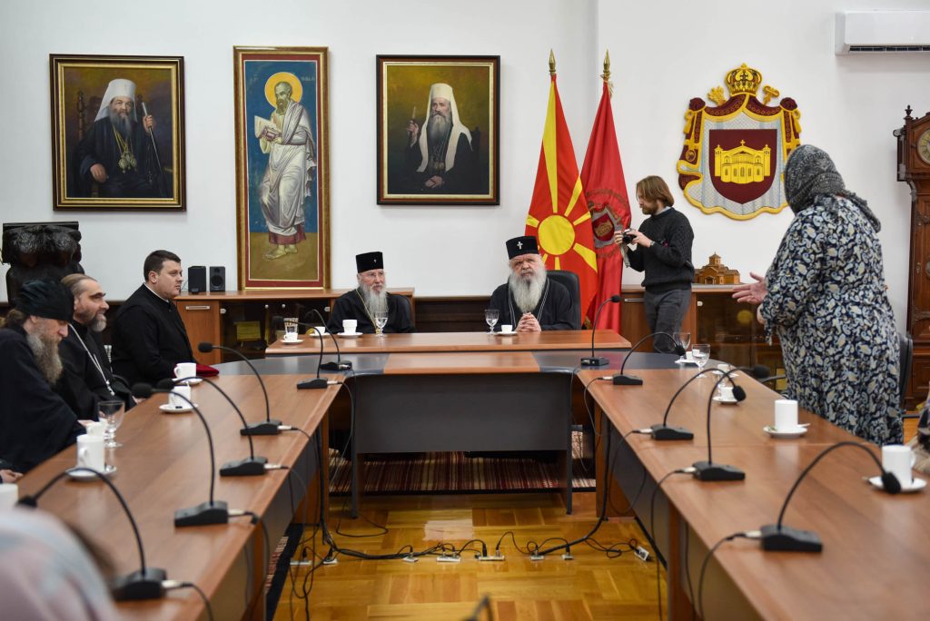 Заедно со верници од Германија, со кои беше во посета на неколку македонски светишта, имаше уште една средба со Архиепископот Стефан, во Архиепископоијата.