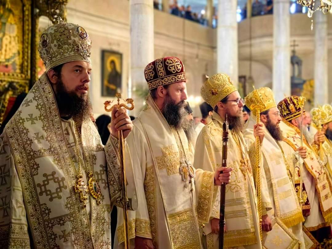 Литургијата ја служеа Архиепископот Стефан и Патријархот Порфириј, а сослужуваа Митрополитот Петар, Митрополитот Јован, Митрополитот Пимен, Митрополитот Јосиф Митрополитот Григориј, епископите Јоаким и Марко, Климент, Јаков, Давид, Никола, како и пензионираниот Митрополит Јосиф од МПЦ-ОА. Од страна на СПЦ сослужуваа Зворничко-тузлански Фотиј, Црногорско-приморски Јоаникиј, Рашко-призренски Теодосиј, Британско-ирски Нектариј, Хвостански Алексеј, Новобрдски Иларион, Топлички Петар. На сослужувањето учествуваше и владика на Црквата на Чешка и Словачка, Михаловско-кошички Георгиј.