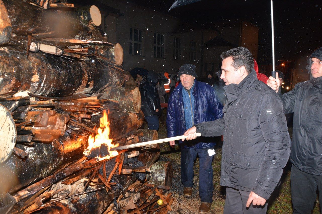 Претседателот на СДСМ, Зоран Заев вечерва го запалил бадникарскиот оган во Гевгелија, каде присуствувал на вечерашниот настан.