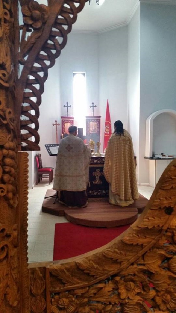 Првата литургија на Отец Гаврил, заедно со Протојереј Ставрофор, Ефтим Бетински,за празникот Св. Спиридон, во црквата Успение на Пресвета Богородица во Синдам – Мелбурн.