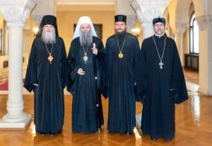 Неговата светост патријархот Порфирије ја угости делегацијата на вечера во парохискиот дом на катедралата Свети Сава. На собирот присуствуваа повеќе архиереи и свештенослужители на СПЦ, српски великодостојници, како и Неговото високопреосвештенство митрополитот Волоколамски Антониј, претседател на Одделот за надворешни црковни односи на Московската патријаршија и протоереј Николај Балашов, потпретседател на СРДК, кои беа во посета на нивниот потпретседател на КРД. Нивната дискусија опфати теми меѓу кои делото и животот на Православната црква во Америка, сеправославната соработка во Северна Америка, Архиерејскиот собор, светското православие, Македонската православна црква, важноста на единството во Црквата и кризата во Украина, стои во соопштението на АПЦ.
