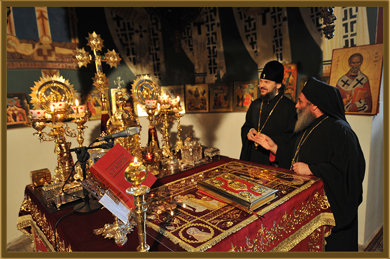 8-Ваше Високопреосвештенство, благодарејќи Ви што нè удостоивте со Вашата посета, ги просиме Вашите свети молитви и Вашиот архипастирски благослов. Но, и како наш ценет гостин од православна Русија, вековната покровителка на православните словенски народи, го просиме и Вашето застапништво за признавање на автокефалноста на Македонската Православна Црква, во чие лице денес е возобновена славната Охридската Архиепископија, која некогаш учествувала во покрстувањето на Света Рус, и со тоа духовно ги сродила нашите православни народи. Ве молиме да ни простите што во овој радосен и свечен миг Ви го спомнуваме тоа, но, навистина, голема рана претставува за нас тоа што денес славната Охридска Архиепископија, поради неоснованото негирање и жестокосрдечноста на дел од клирот на Српската Православна Црква, претрпува неправедна изолација од православната екумена, и што ние, нејзините духовни чеда, не сме, не по наша волја и вина, во евхаристичко општење со нашите православни браќа во Христа, му посочил Архимандритот Партениј на гостинот од Руската православна црква.