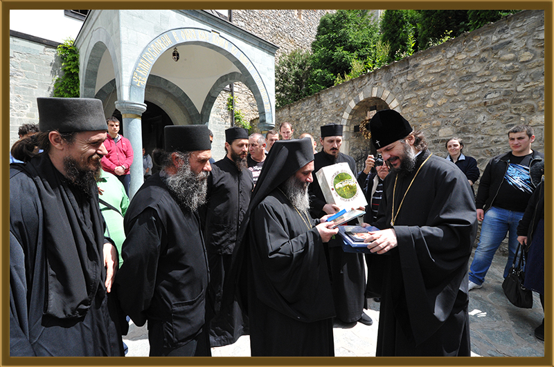 -Особена чест и радост ни е што благоволивте да дојдете кај нас денес, на споменот на Светите Рамноапостолни Браќа Кирил и Методиј, на тие молитвени застапници за родот словенски и огнени столбови што горат крај Престолот Божји за целото човештво. Веруваме дека токму нивниот благослов Ве донесе сега овде, во овој древен Манастир, еден од првите словенски општежителни манастири воопшто, кој за четири години ќе го слави своето илјадалетие, изјавил Игуменот на бигорското монашко семејство.