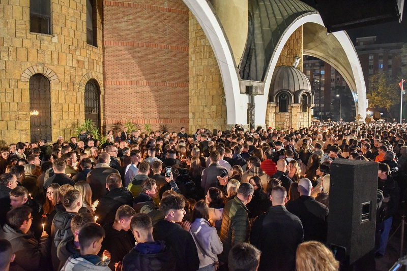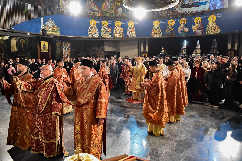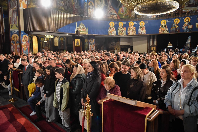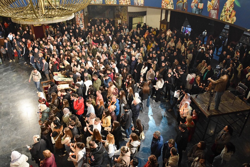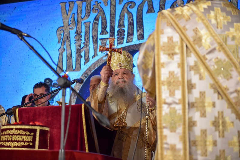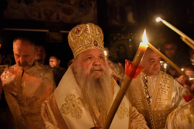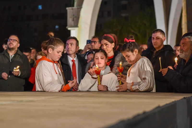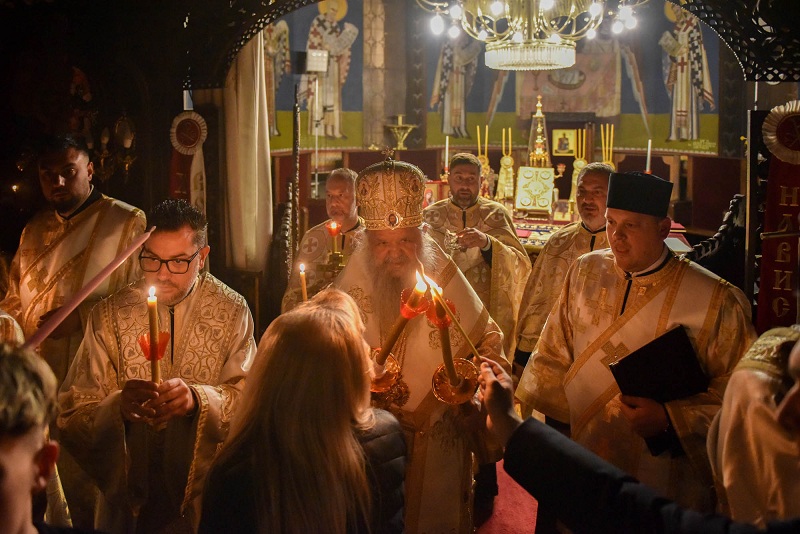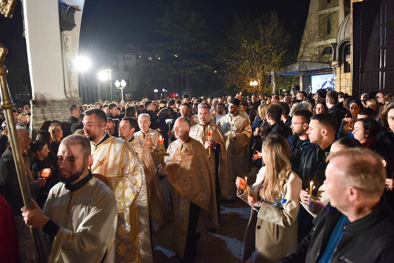 Пасхалната литургија за Воскресениет Христово во Соброниот храм во Скопје годинава беше отслужена во текот на ноќта. Почна по опходот на црквата и траеше до раните утрински часови.