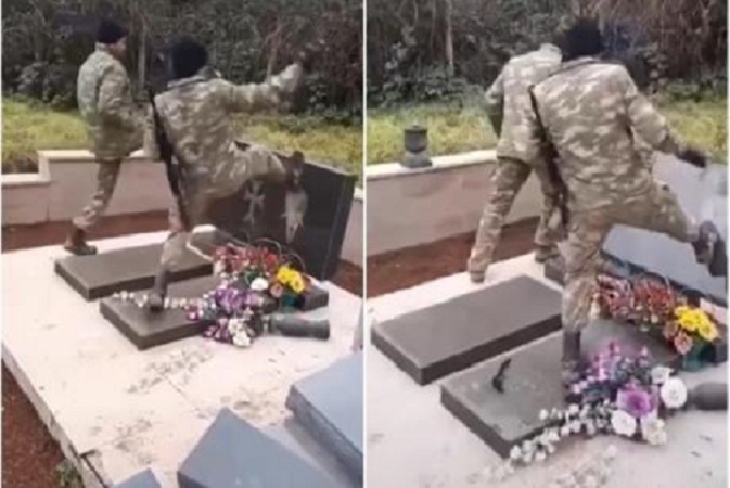 На социјалните мрежи се појави видео на кое може да се види како азербејџанските војници уништуваат ерменски гробишта во областите во кои презедоа контрола.
