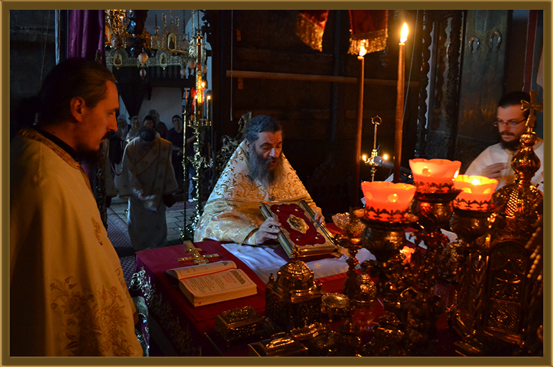 -Денес не само што Христос им покажа на учениците дел од својата слава Божествена, туку и ги научи дека Неговата светлина го осветлува и вештественото тело и целата видлива природа. Со тоа нашиот мил Спасител ни открива дека човечкото тело не само што може, туку и треба, преку благодатта Божја и нашиот личен подвиг, да стане пребивалиште на живиот Бог, храм на Божјата слава. Преображението Господово ни покажува дека и ние сме повикани да биде сопричесници на Таворската светлина, на славата Божја, на Царството на Бога; дека тоа Царство се содржи во славата Негова, во нетварната Светлина. Таворската светлина не се ограничила само на тројцата Апостоли. Од денот на Педесетницата таа ја озарува целата Црква Христова и се распространува низ светот преку присуството во Неговите светии. Но, и секоја Света Литургија е оприсутнување на таа обоготворувачка светлина. Тоа особено се почувствува денес, на Литургијата началствувана од нашиот Старец, Архимандрит Партениј, кога сите пристуни во бигорскиот храм се исполнија со светлата преображенска радост, чиишто зраци започнаа да наѕираат уште за време на вчерашното молитвено бдение. И сите ние, по неискажливата милост Божја, го вкусивме тоа веселие на славата Божја, што пред нас го откриваа благодатните песнопенија на денешниот празник, велат монасите од Бигорскиот манастир.