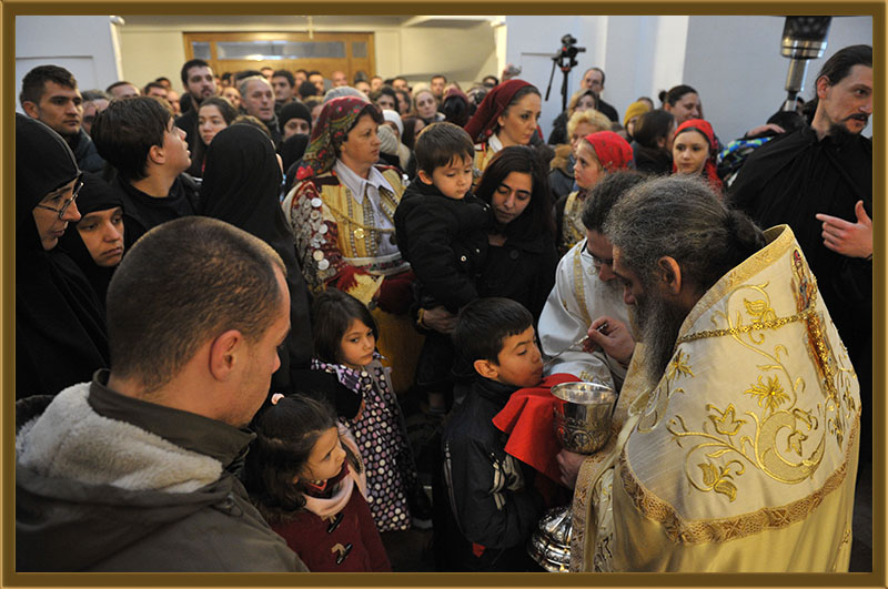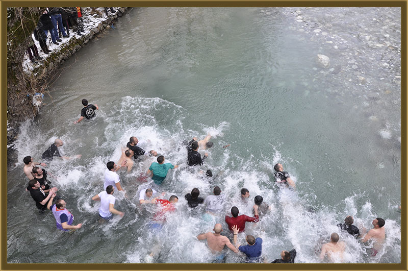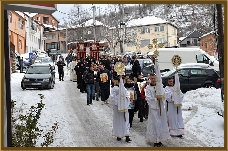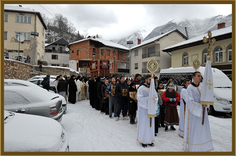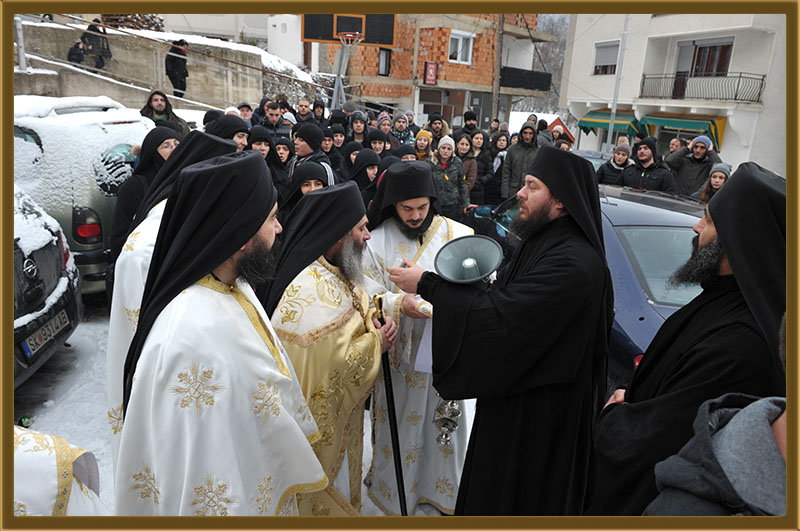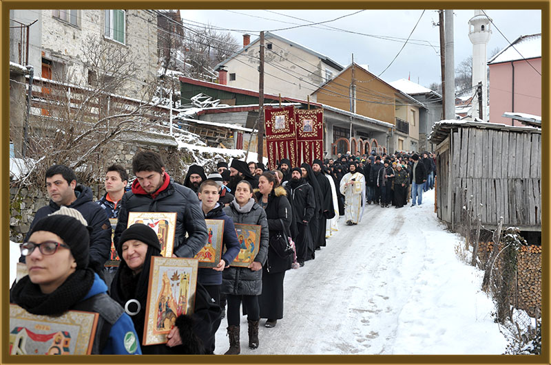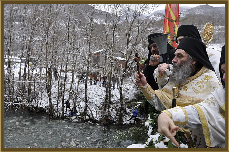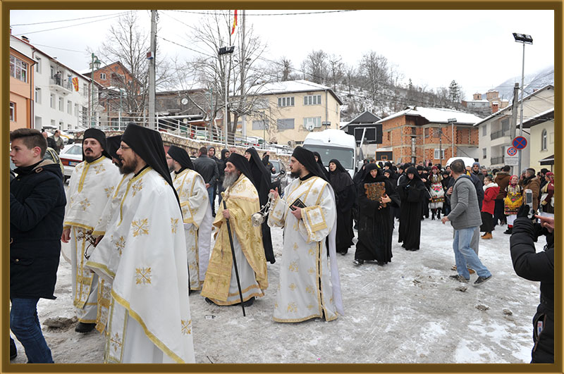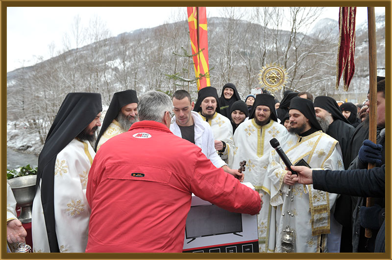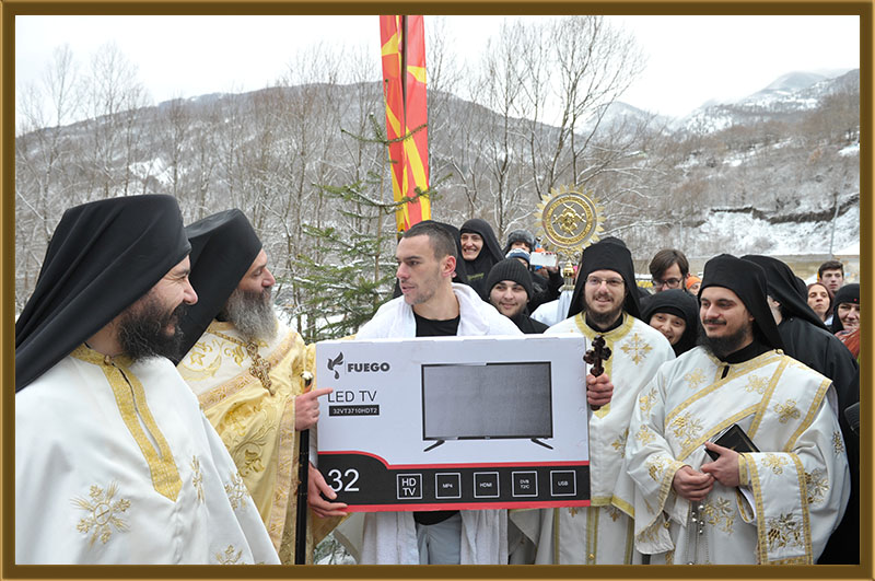 -И самата природа со своето снежно белило како да ја сведочеше таинствената светлина на овој ден. Сепак, таа чудесна светлина, најсилно ги озари сите присутни на празничната богослужба во новоживописниот ростушки храм на Пресвета Богородица, каде што благодатните зраци на Богојавленската Литургија силно ги пронижаа нивните срца, осенувајќи ги со радоста на Просвештението. Како целата природа да се придружила на громогласното пеење во храмот, кога со радосните стихови на торжествениот тропар се објави Крштението на Господа во Јордан и сведоштвото на Света Троица. И целата природа се радуваше кога верните, облагодатени од небоземната Литургија, со весело расположение се упатија во празнична литија кон мостот, за таму молитвено да земат удел во традиционалното осветување на водите. Обилната снежна покривка и зимска свежина не можеа да ги спречат пријавените кандидати да влезат во студените води и таму да го стекнат благословот на осветувањето. Среде насобраното мнозинство на мостот се слушна Гласот Господов, кој низ устата на Старецот ги повикуваше верните: „Пријдете примете го сите Духот на премудрост, Духот на радост, Духот на страв Божји, на Христа Кој се јави“, и се изврши чинот на осветувањето. А оној што се удостои да го извади од водата крстот ,што нашиот Старец, Архимандрит Партениј го положи во неа, 24-годишниот Душан Чимев од Виница, покрај обилниот благослов, штедро излеан врз него од Господа, беше награден и со пригоден подарок од страна на нашите редовни дарители и големи пријатели на манастирот, општината Маврово-Ростуше и компанијата „Ха-Ем“, велат од Бигорски.
