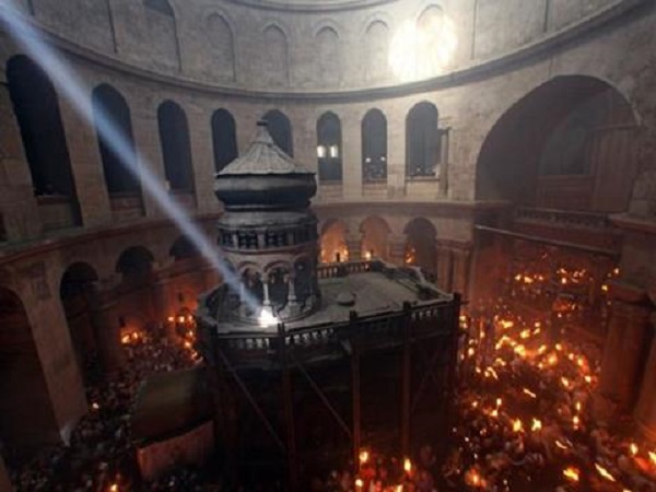 По извесно време во храмот се појавува необјаснива трепетлива светлина којашто изгледа како да тече надолу по ѕидовите и столбовите, а од отворот на куполата во храмот на Гробот Господов (црквата на Светиот Гроб) вертикално се спушта широк столб светлина.